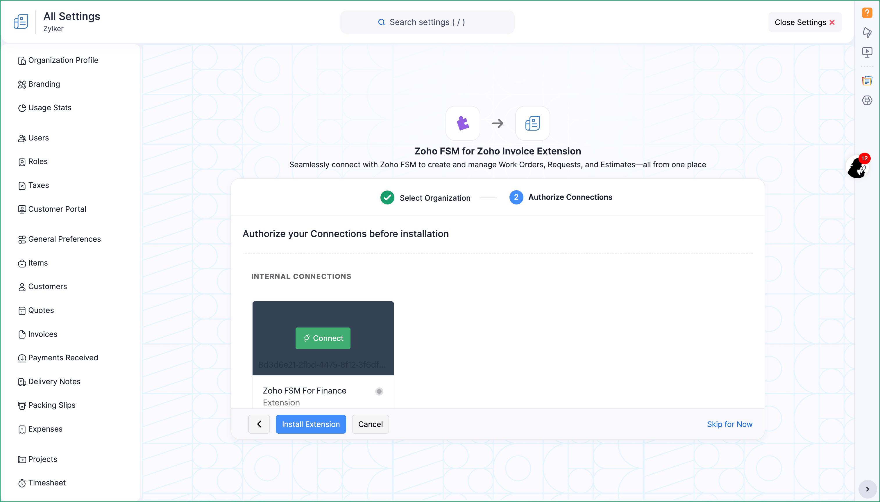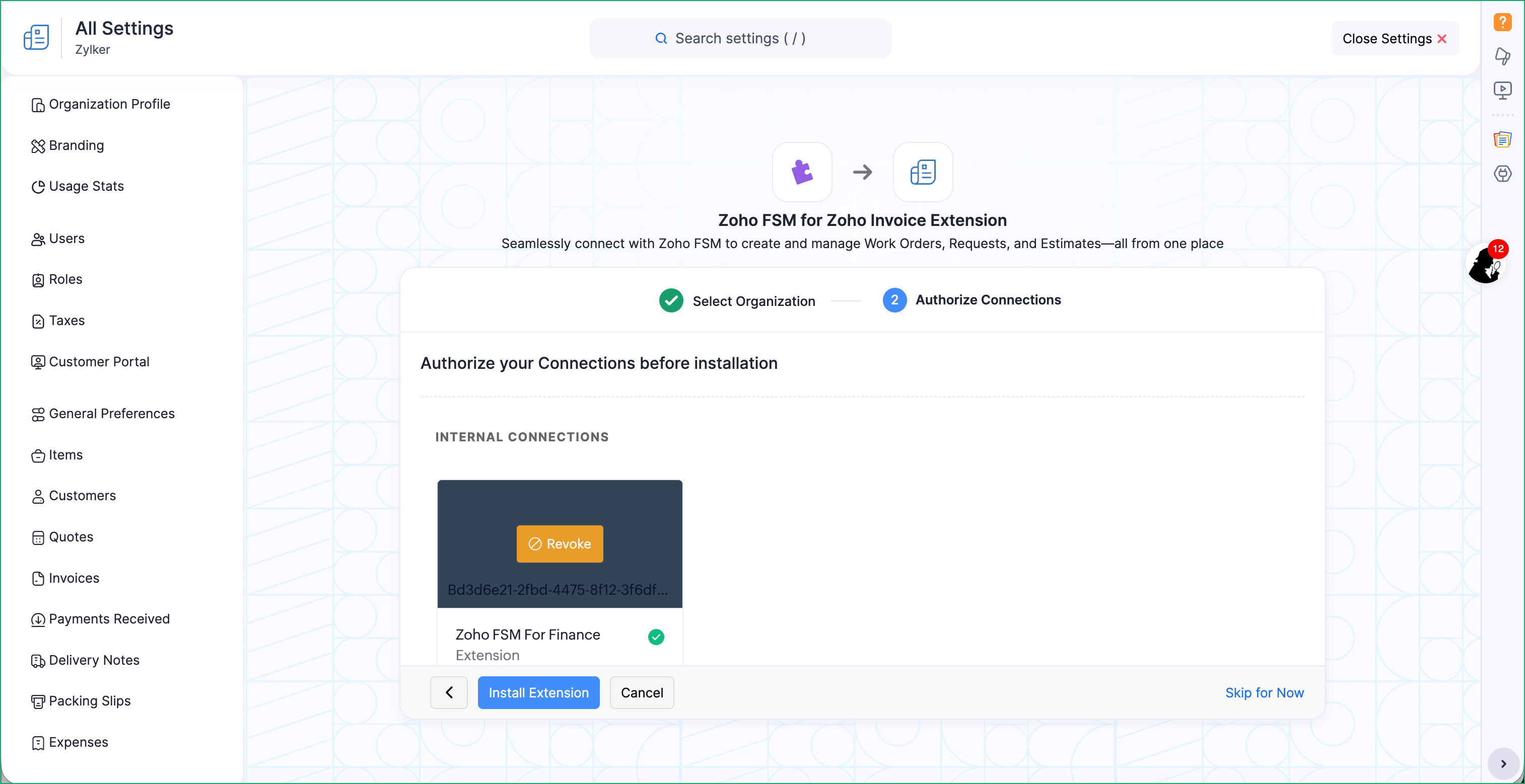To install the extension from your Zoho Invoice account: