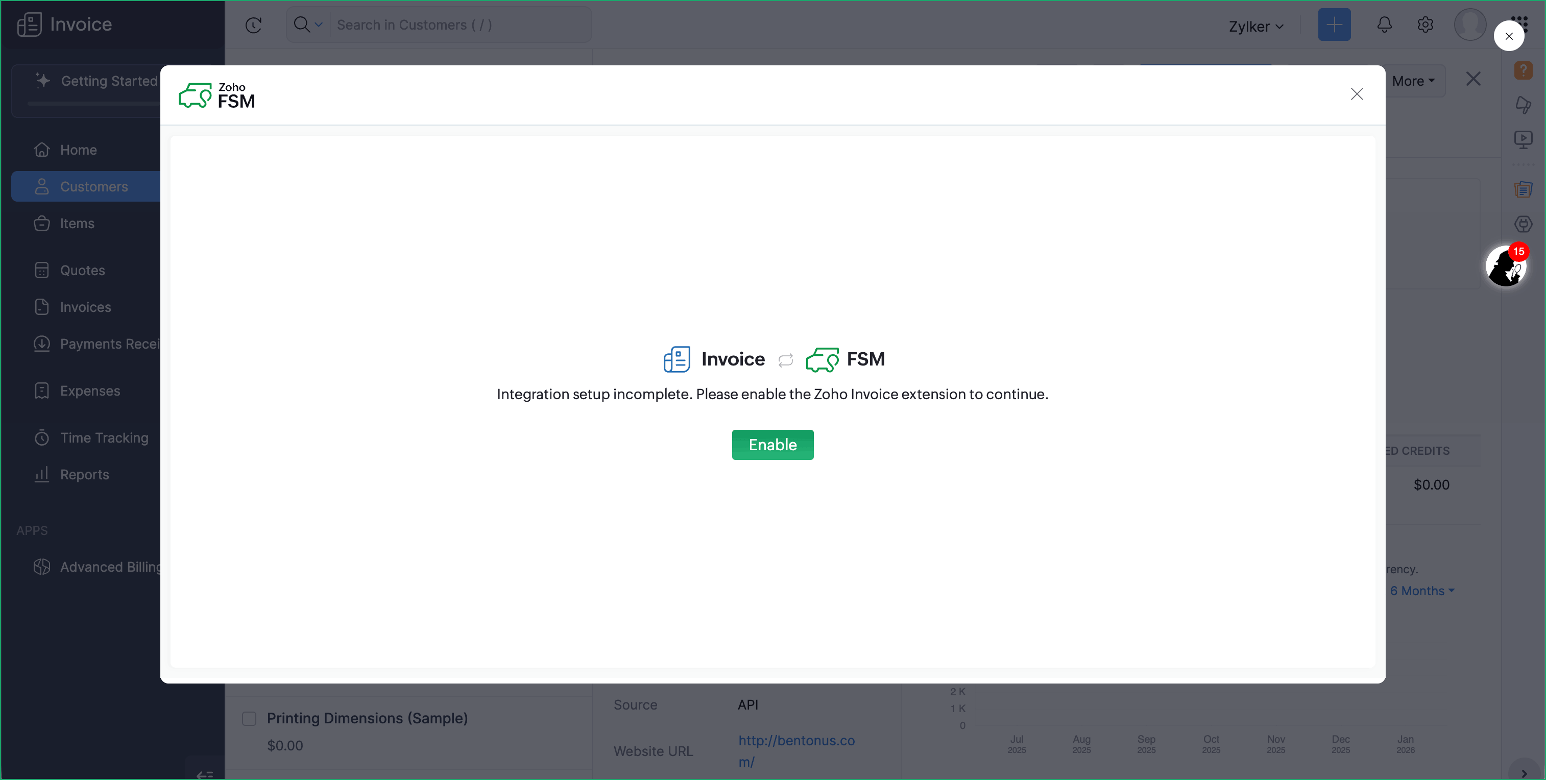 Access and generate records for Zoho FSM modules within Zoho Invoice