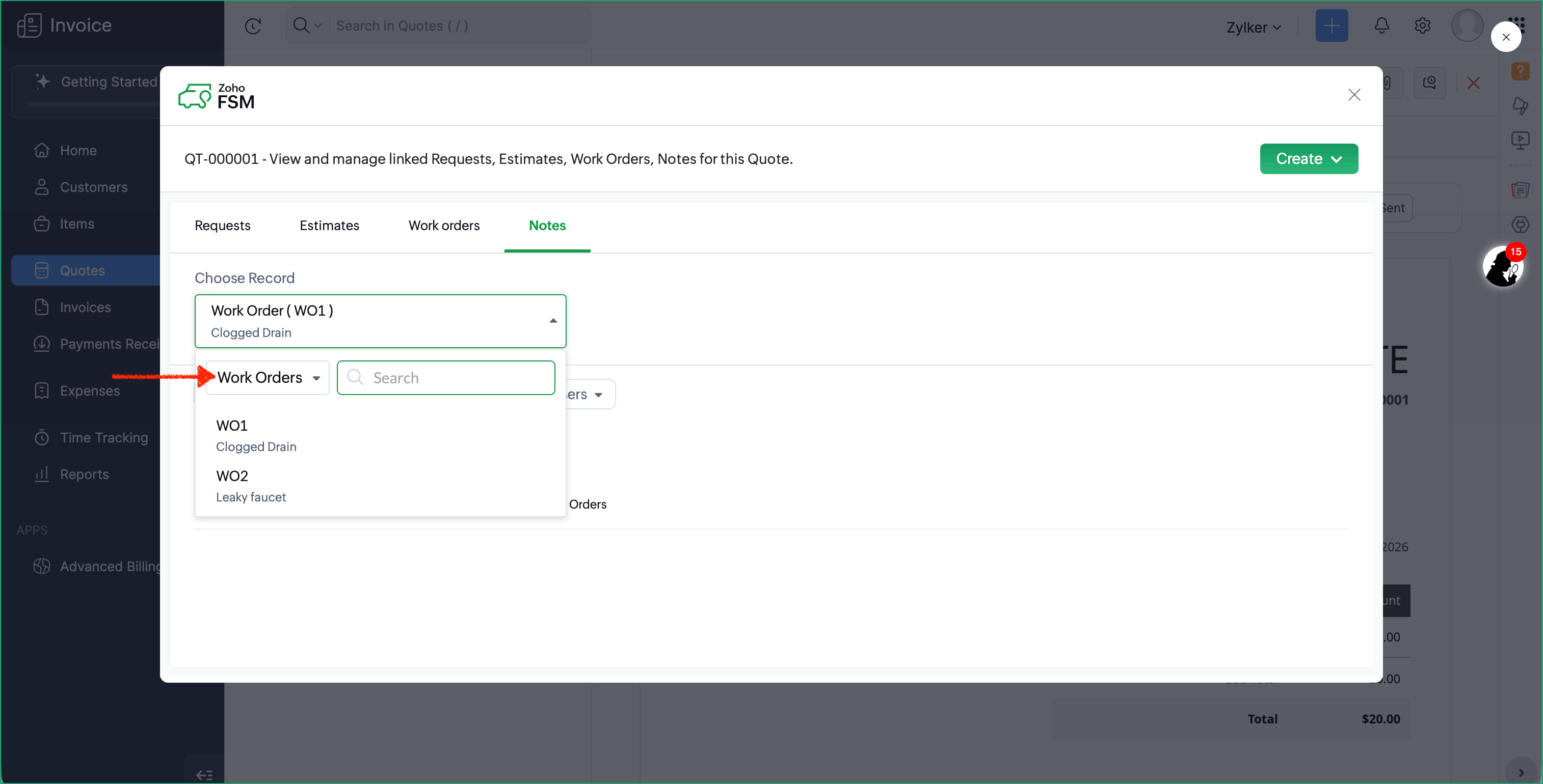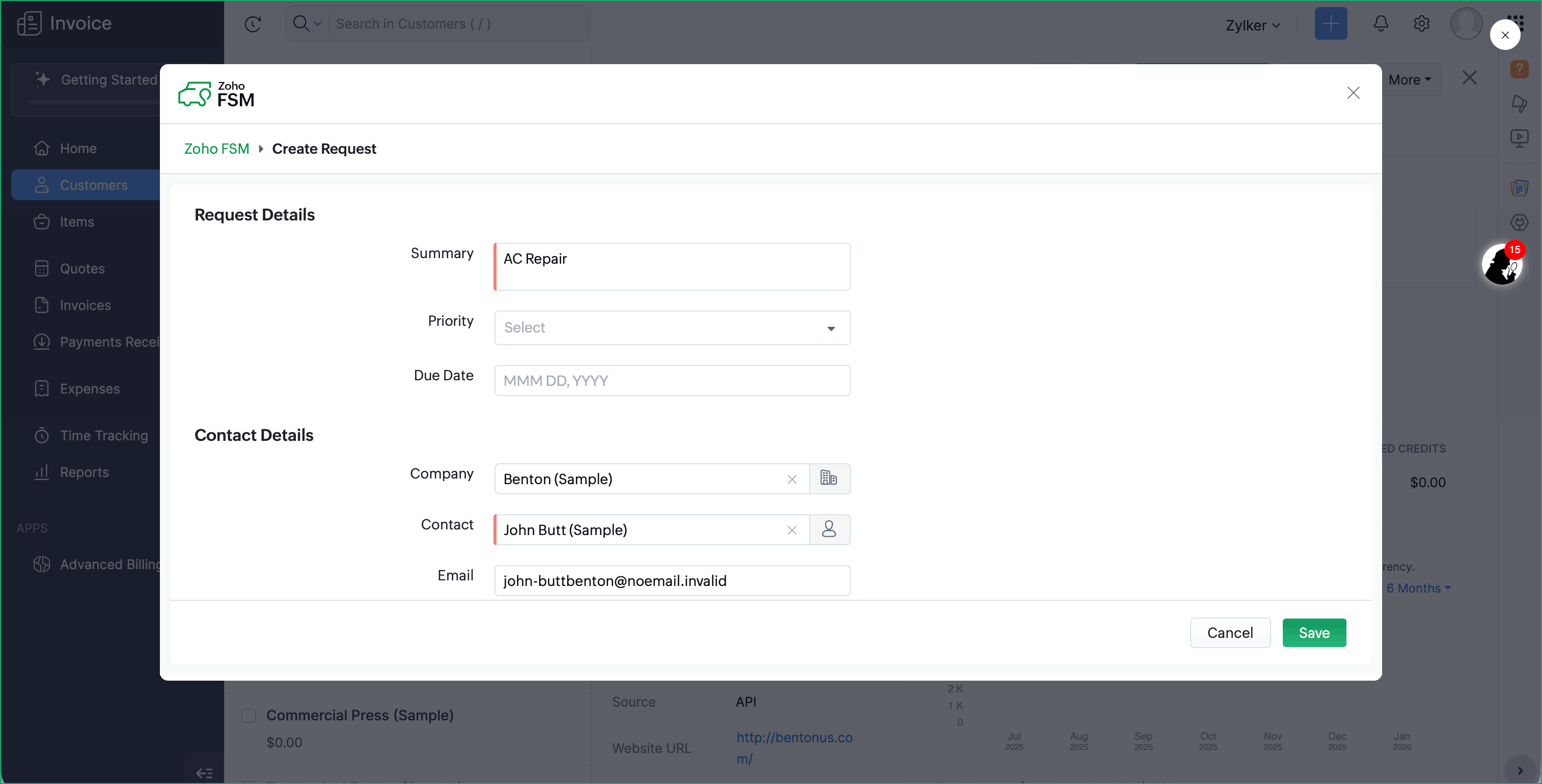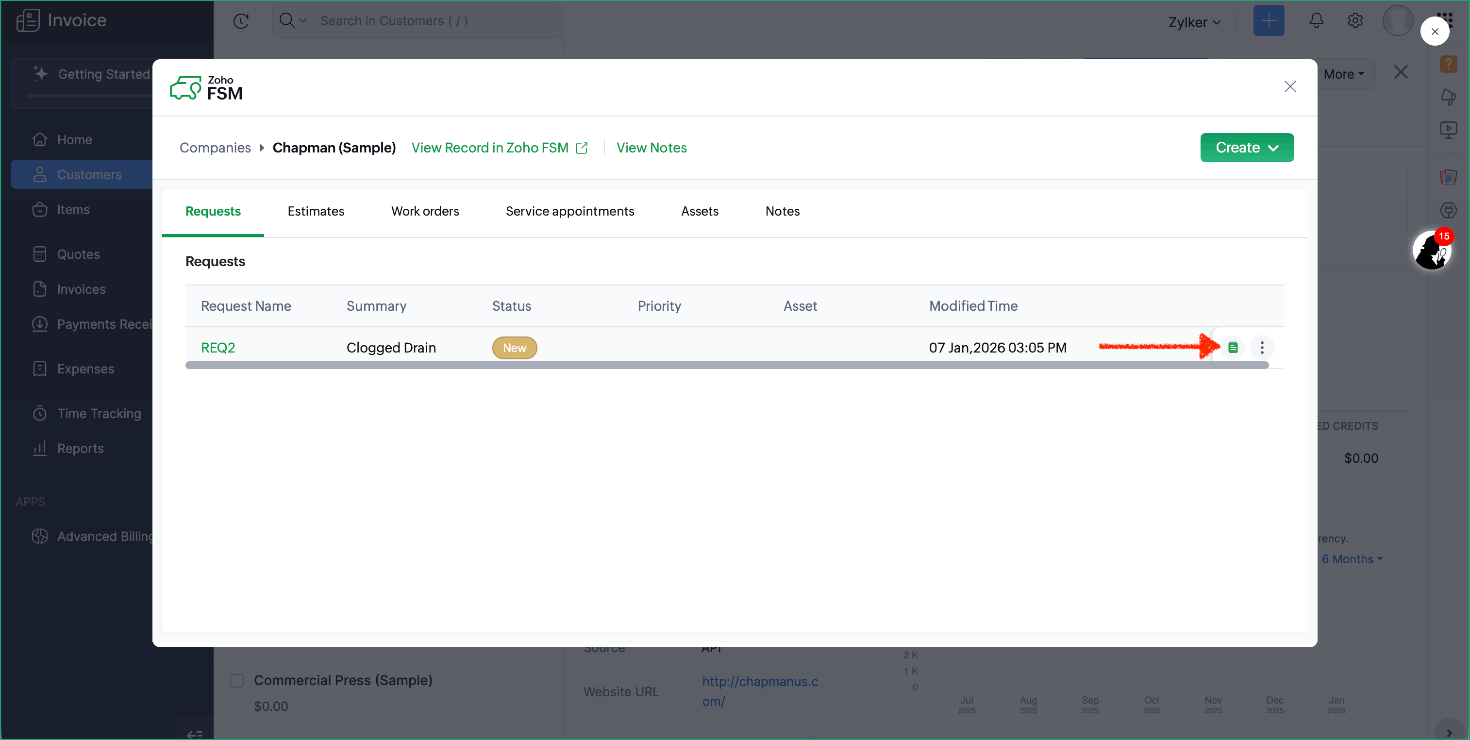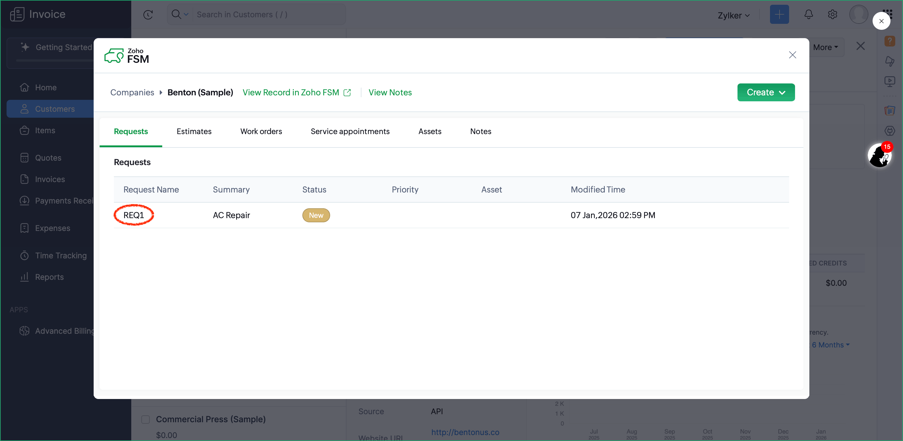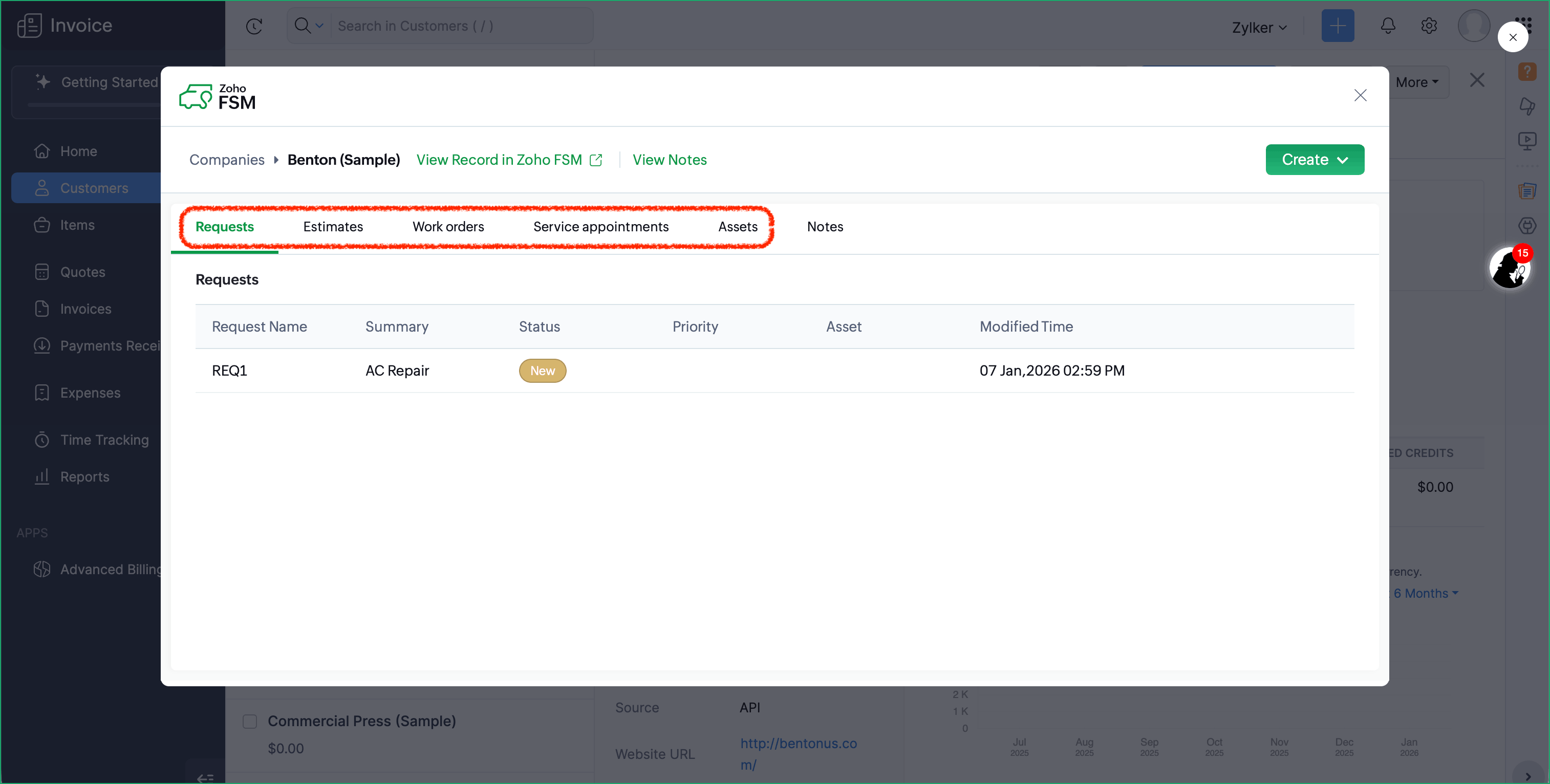 - Create Zoho FSM Requests, Estimates, and Work Orders from a Zoho Invoice Customer or Quote