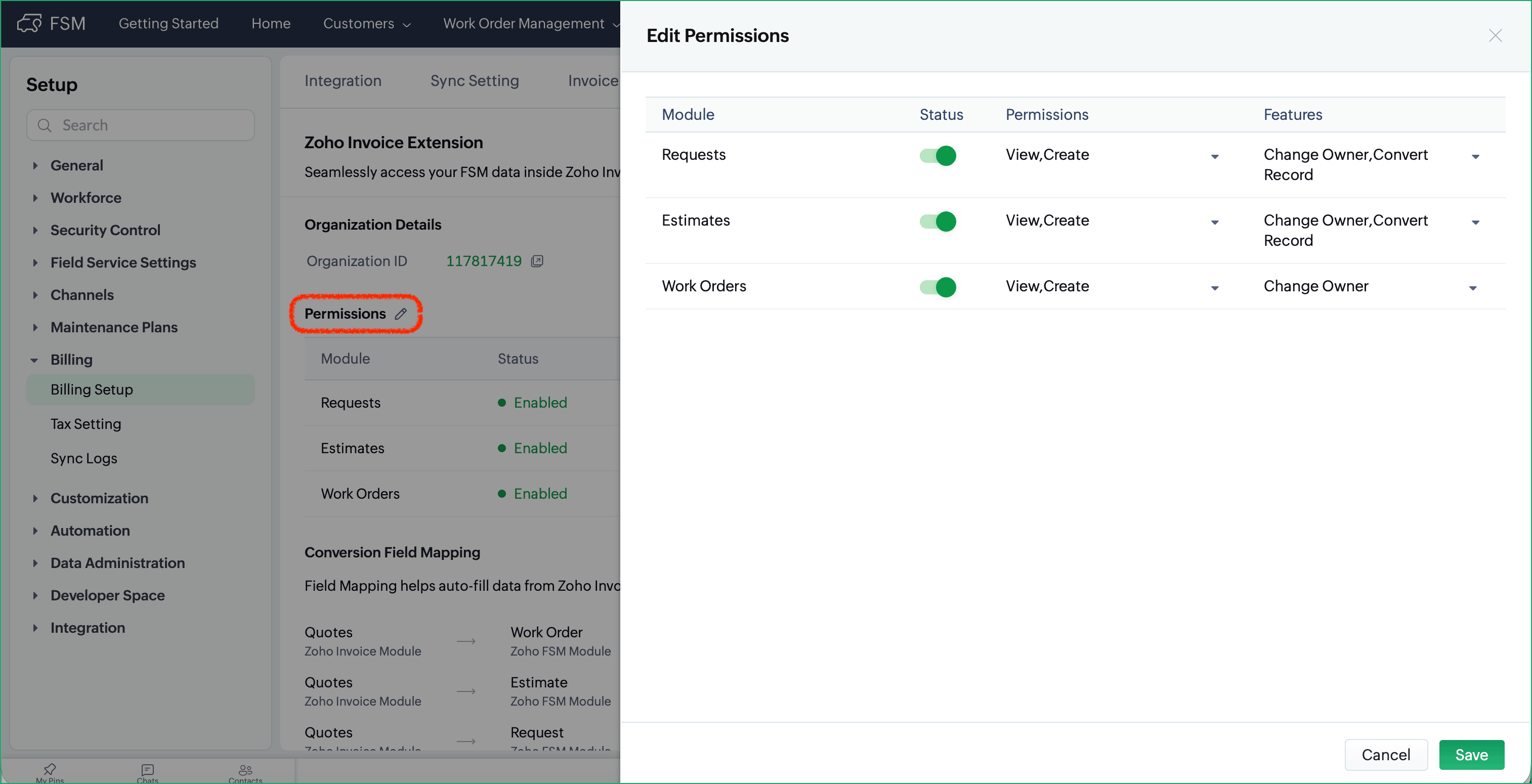 Permission Required: Super Admin of your Zoho FSM org