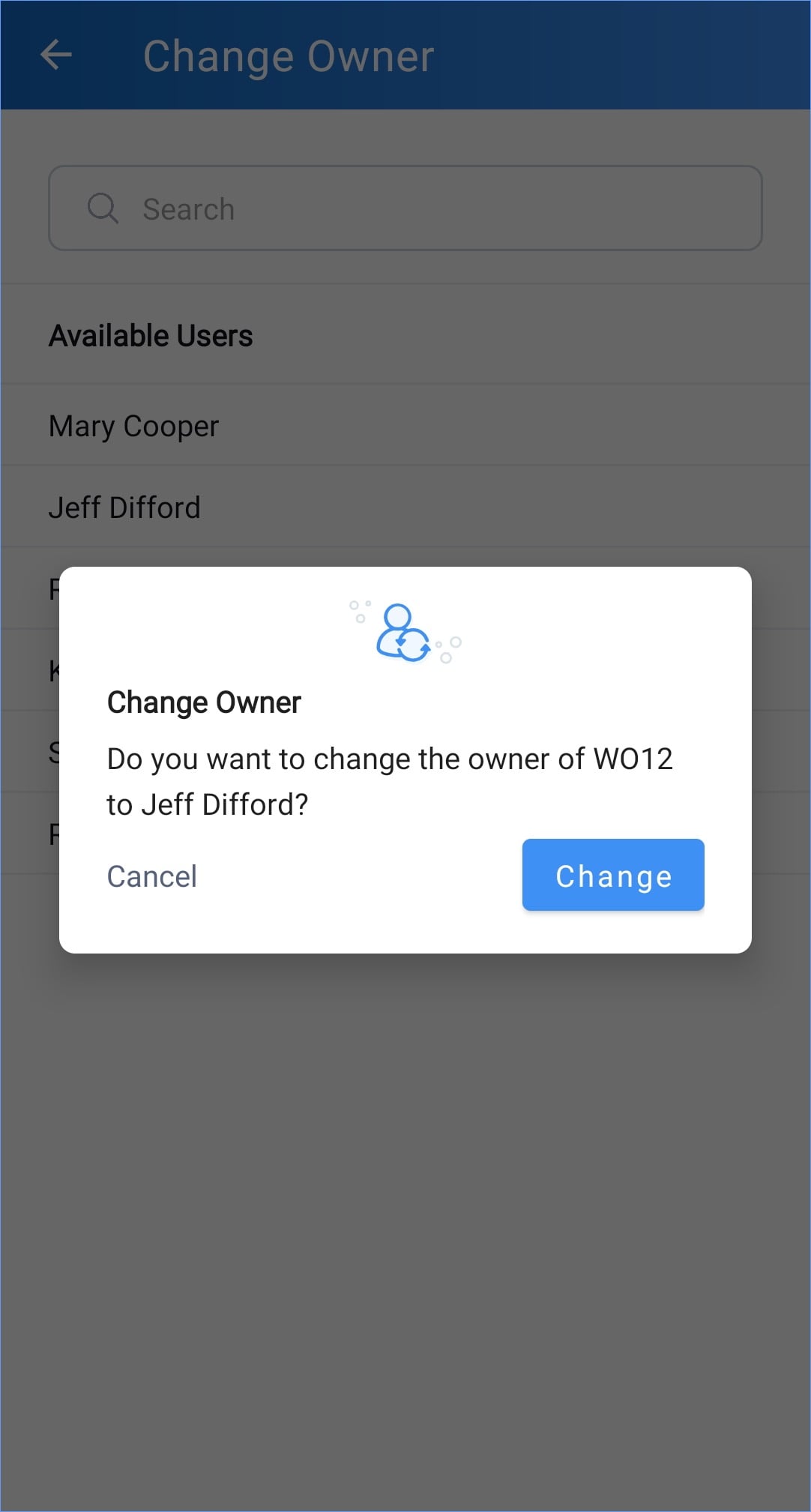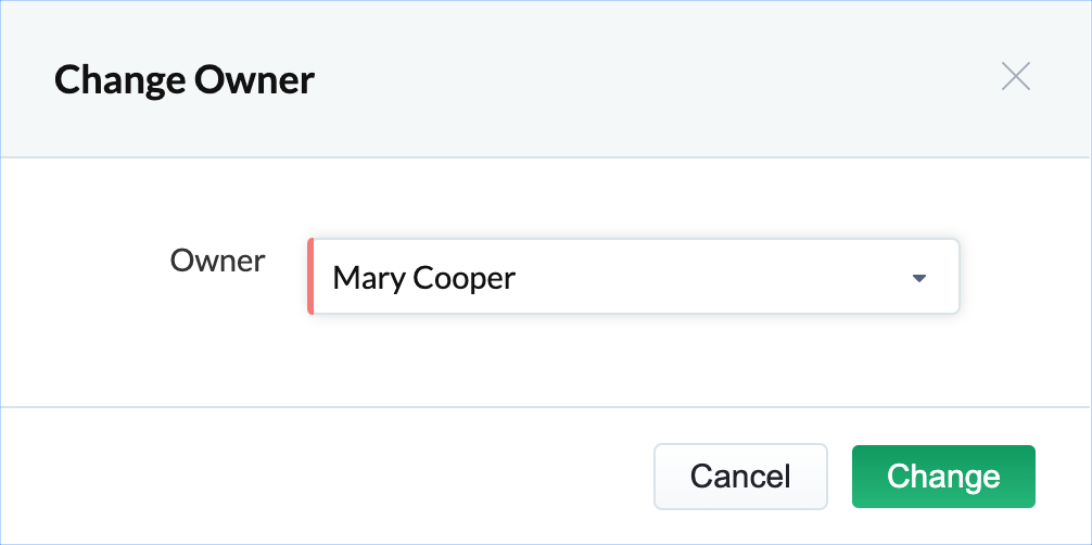 - Select the user you want to be the owner and click Change.