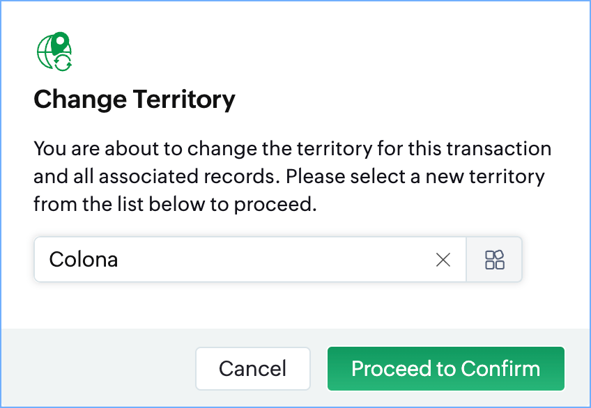 - Select a territory and click Proceed to Confirm.