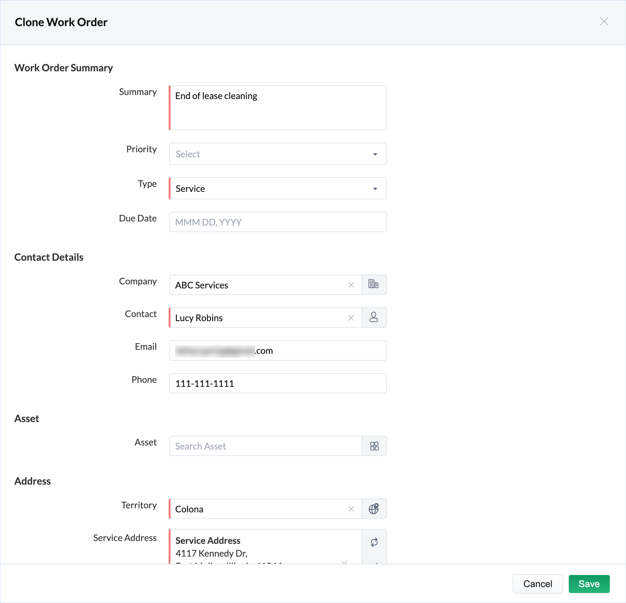 - Open the record you want to clone.