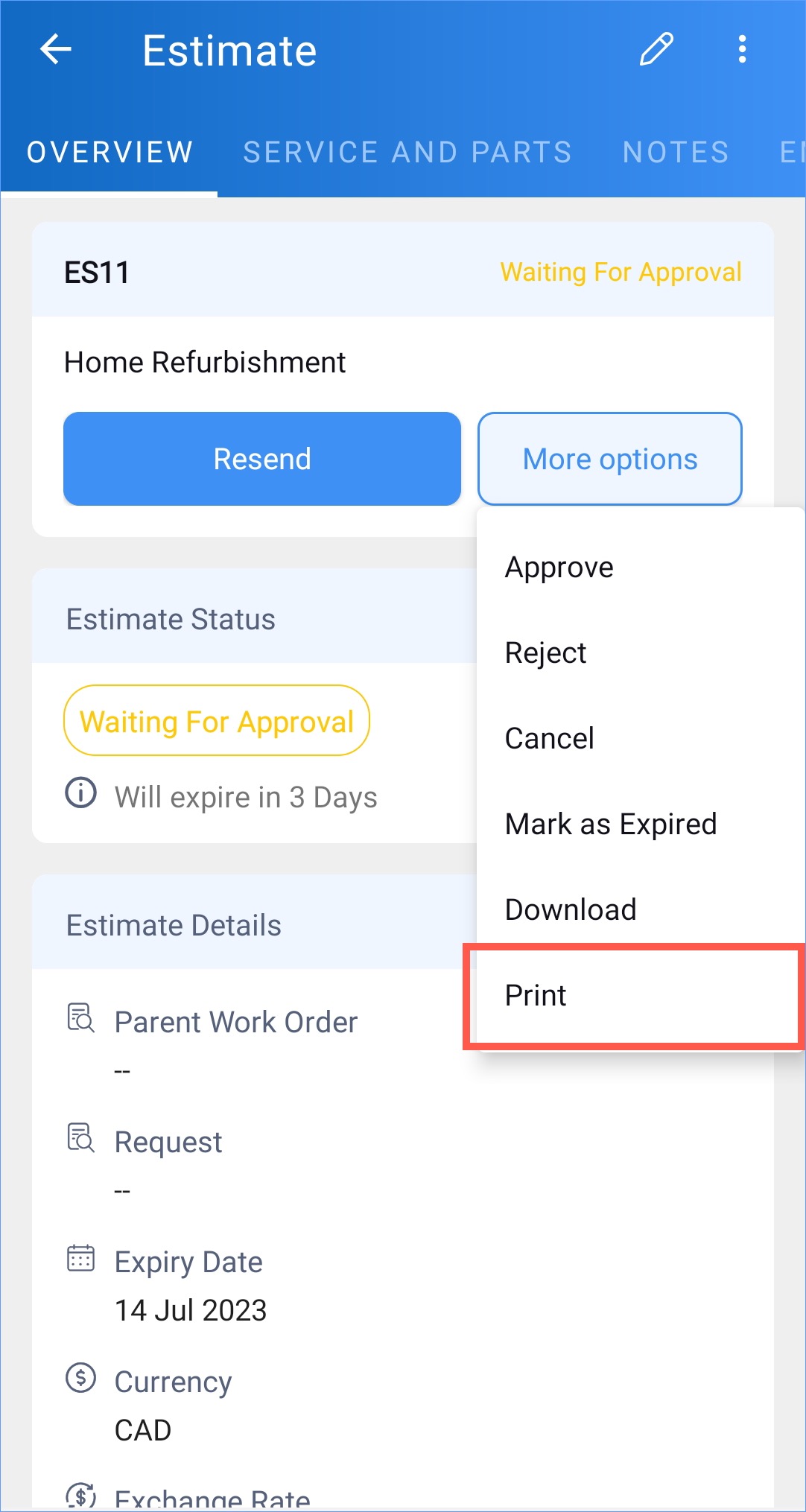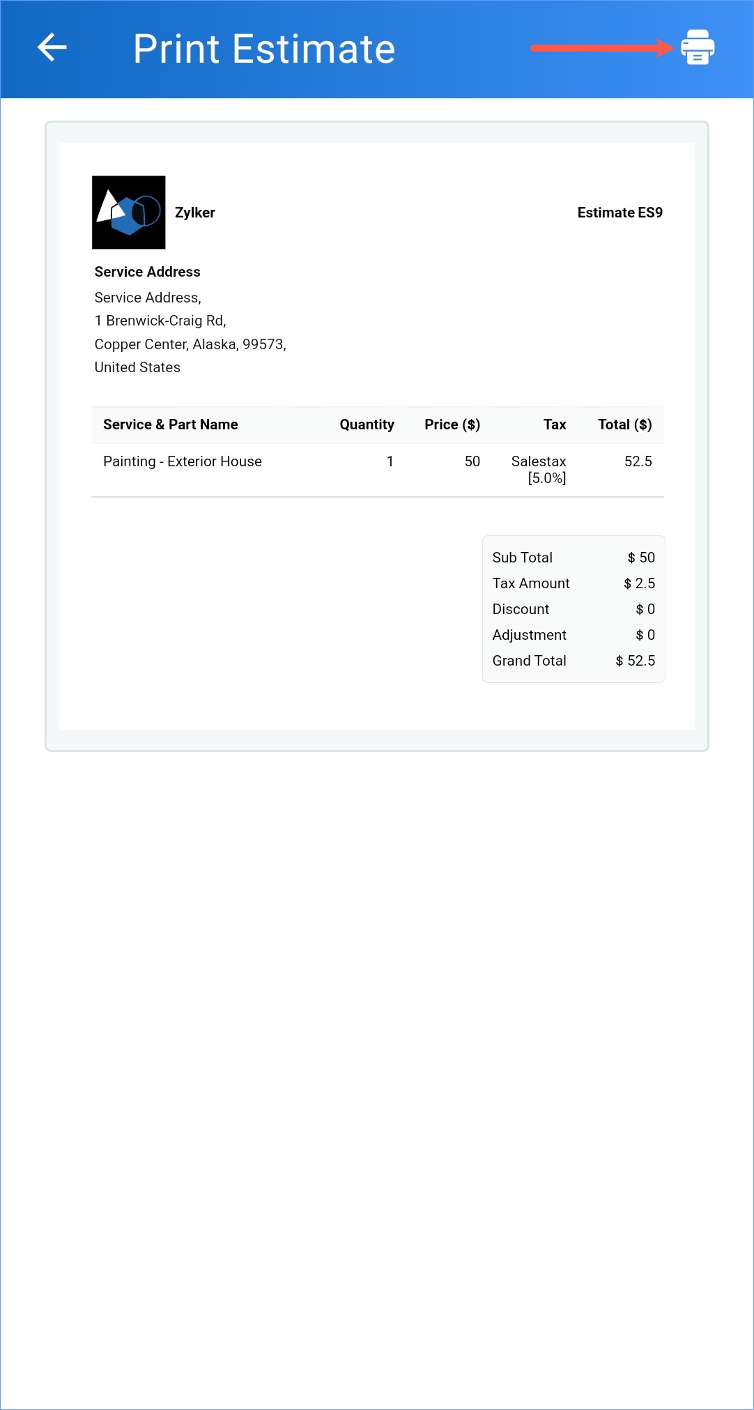 - In the case of Estimates, you can print the record only after you have emailed the estimate.