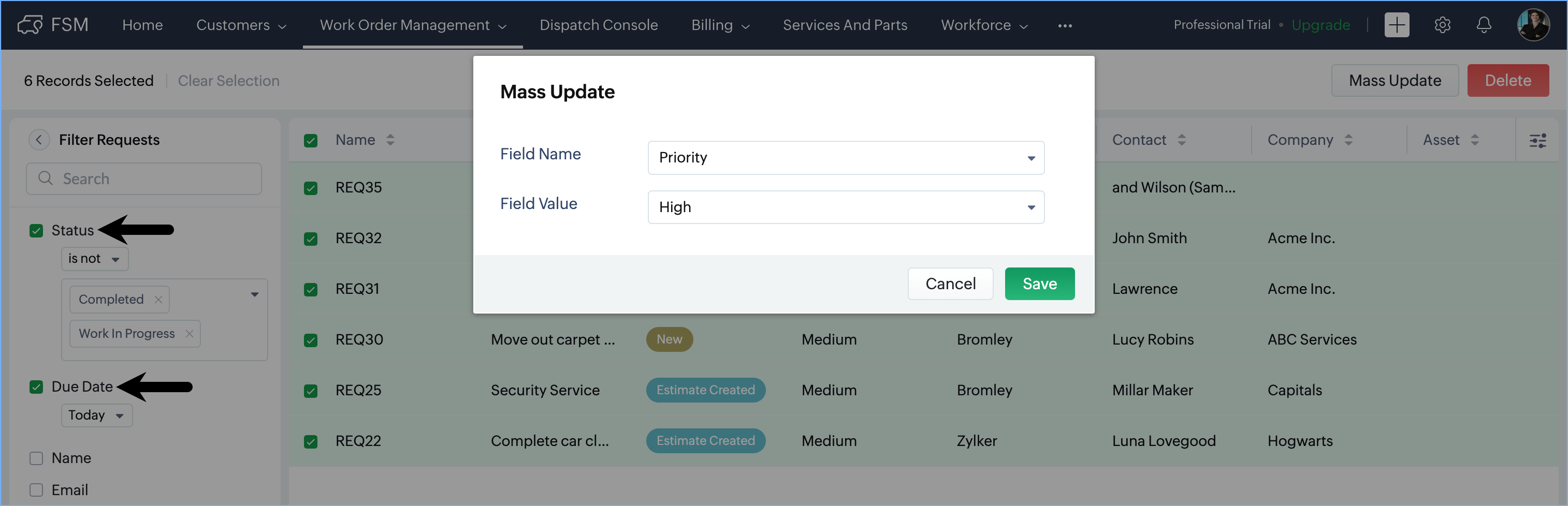If you need to escalate the priority of all overdue requests, you can update their priority in one go.