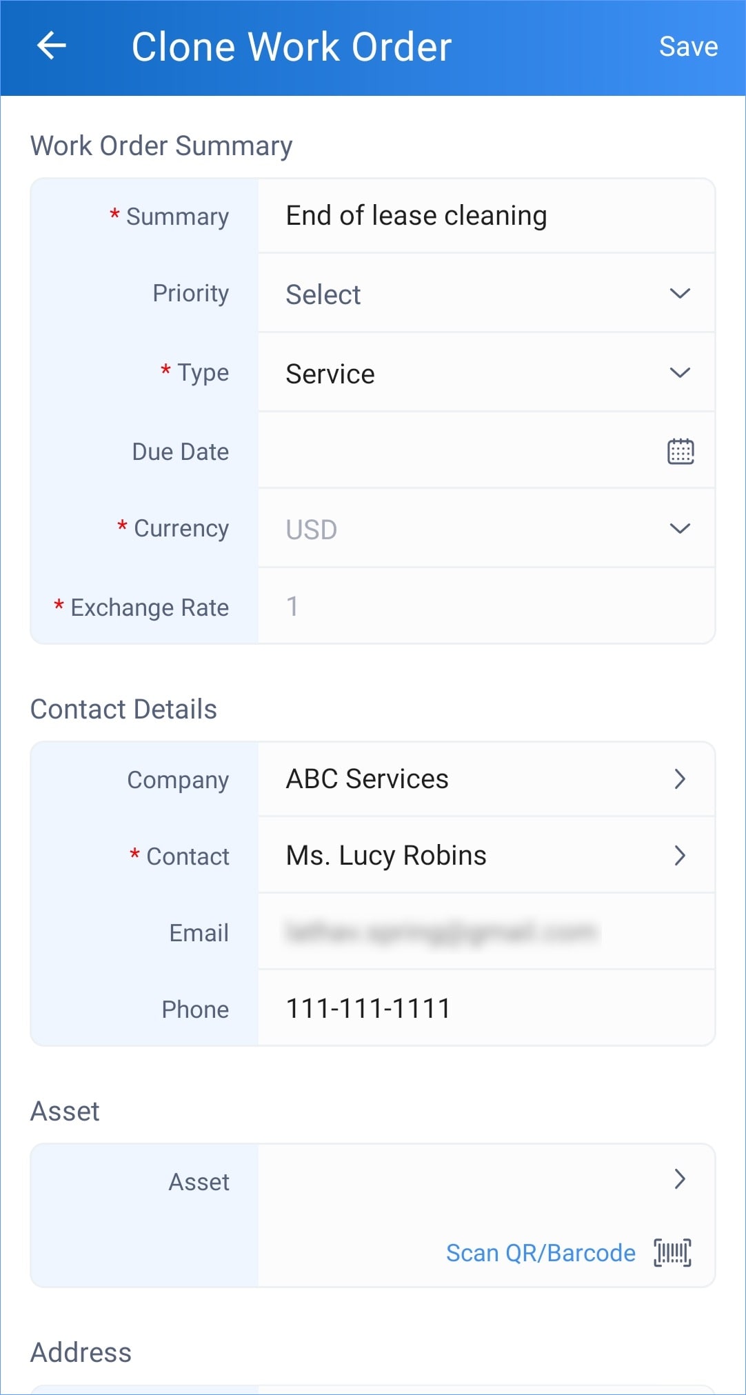 To clone a record from the mobile app: