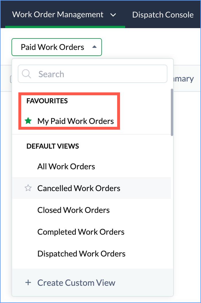 Once the view is bookmarked, the favorite icon next to the view name will be highlighted []. The bookmarked views can be viewed under Favourites.