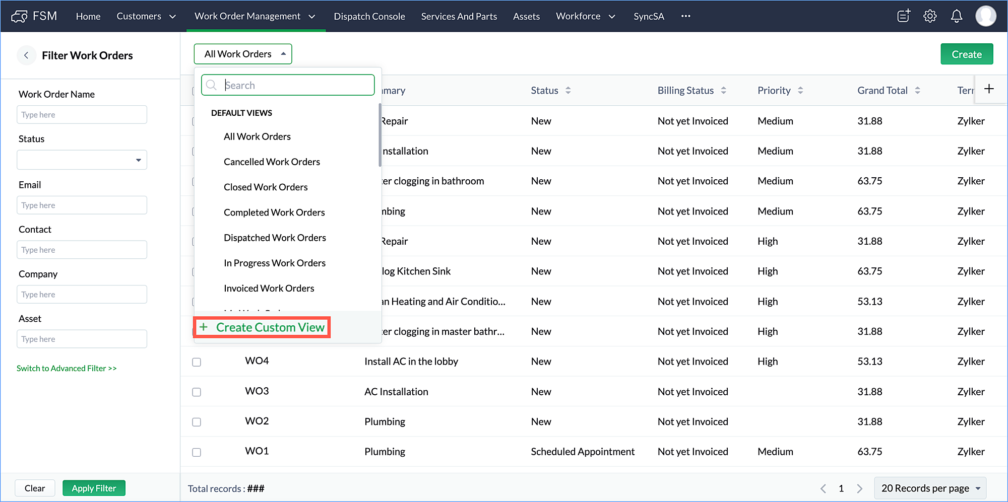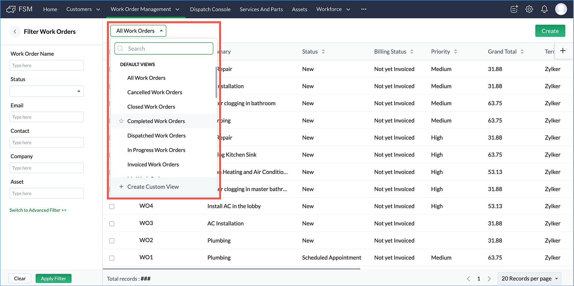 Zoho FSM | Views