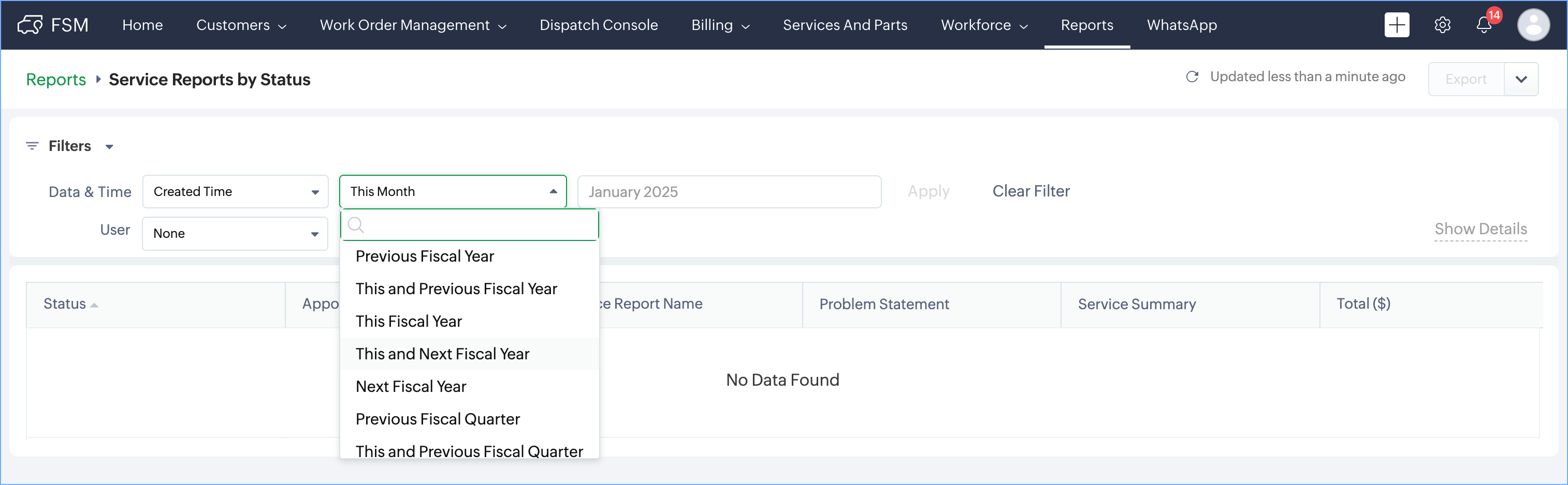 In this method, the year is divided into 12 calendar months. In Zoho FSM, by default, the fiscal year type chosen is Standard and is set to start from January.