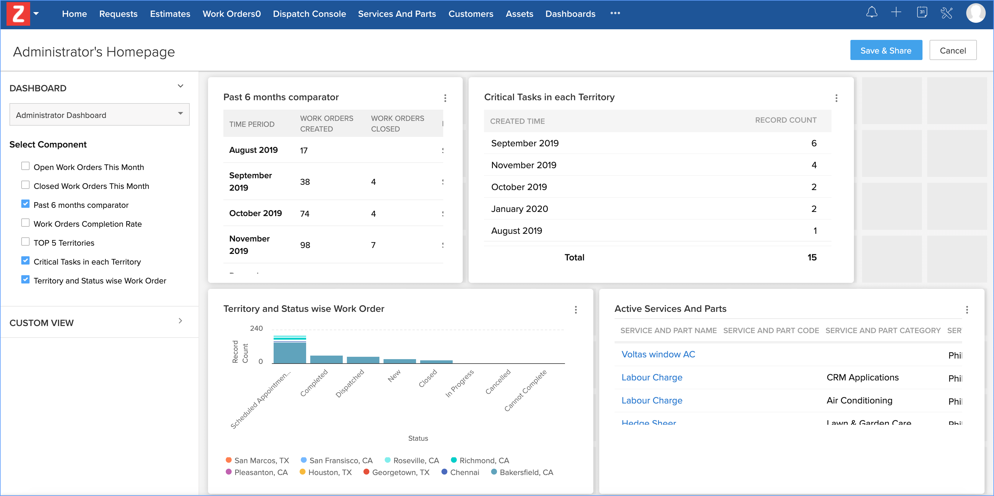 2. Enter a name for the homepage, add components from Dashboard or Custom View and click Save & Share.