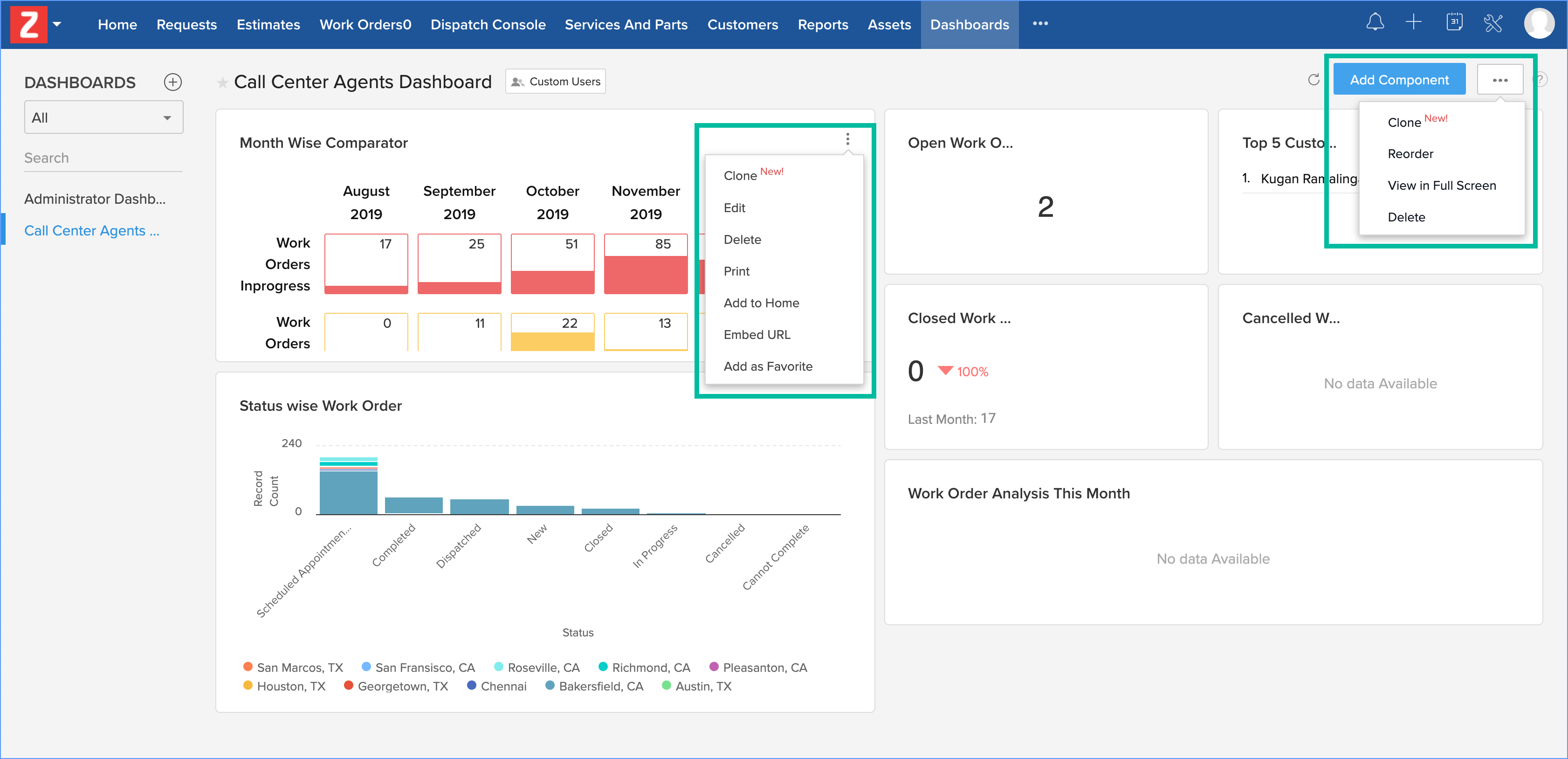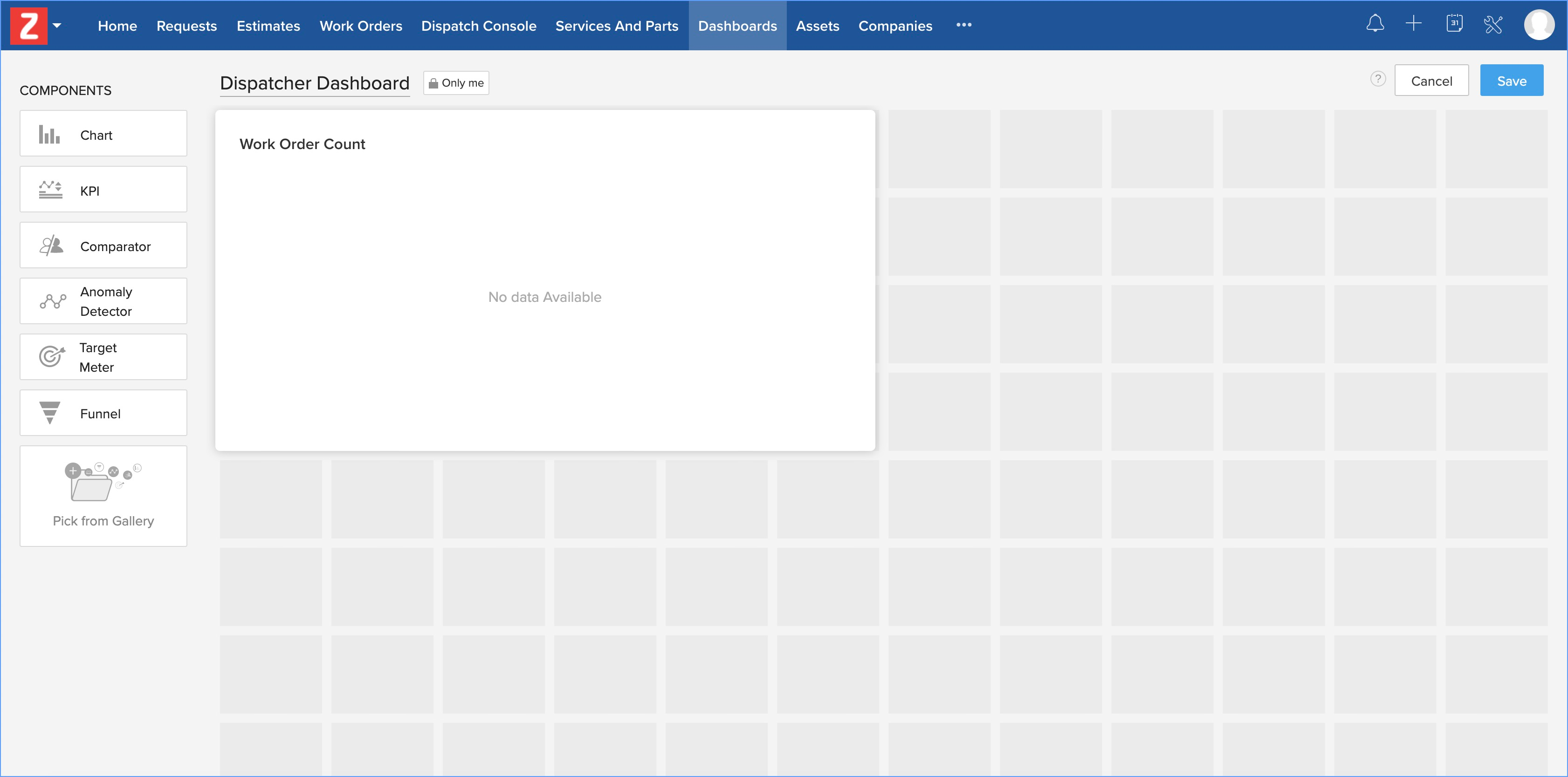 Once created, you can add new components to the dashboard. You also have the option to make changes to the components added to a dashboard.