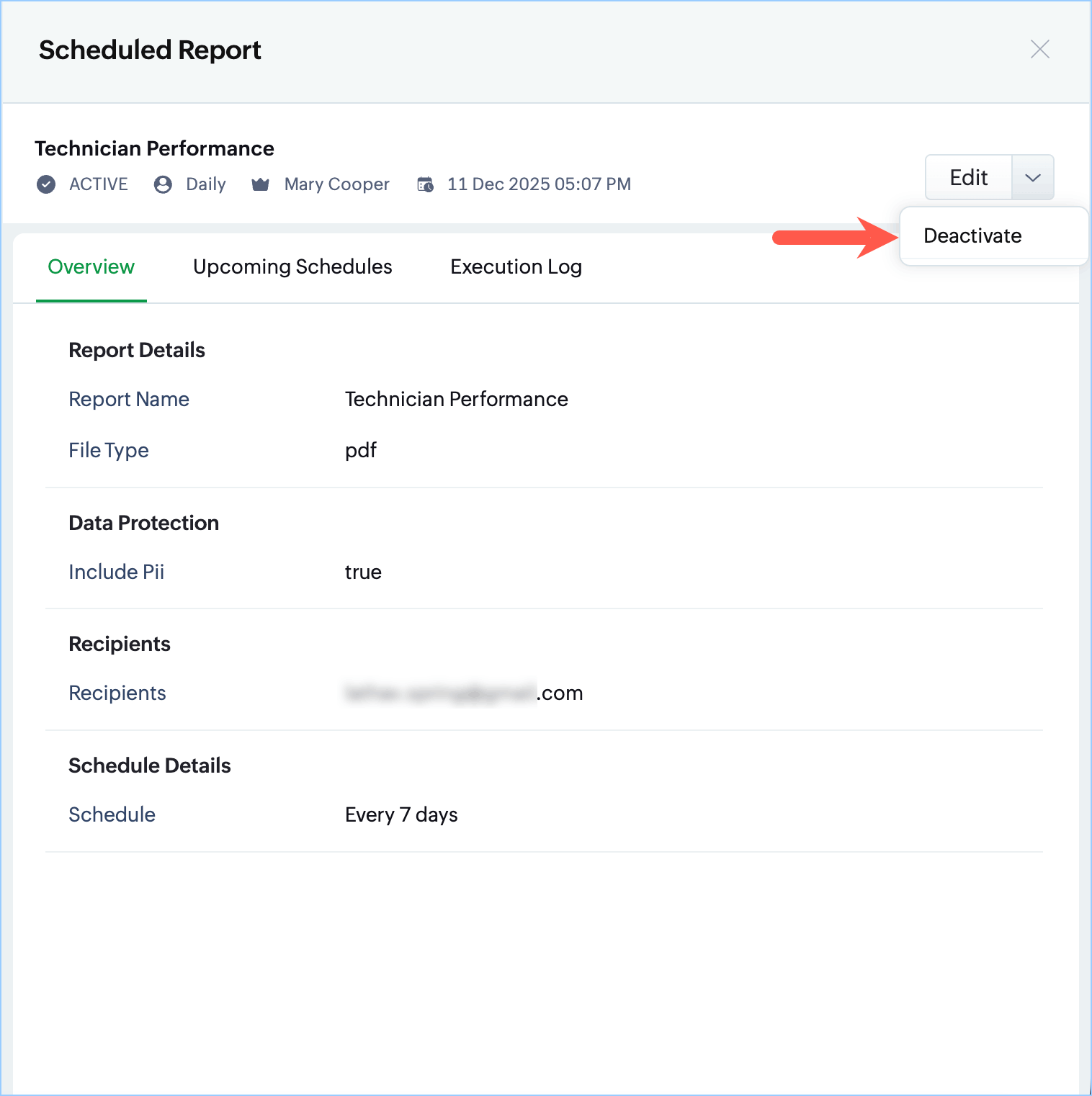 Deactivate a Scheduled Report