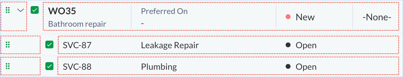 ] or clicking on anywhere in the row corresponding to the work order or service.