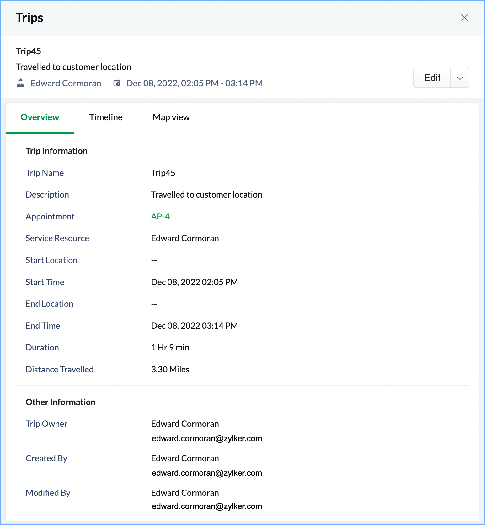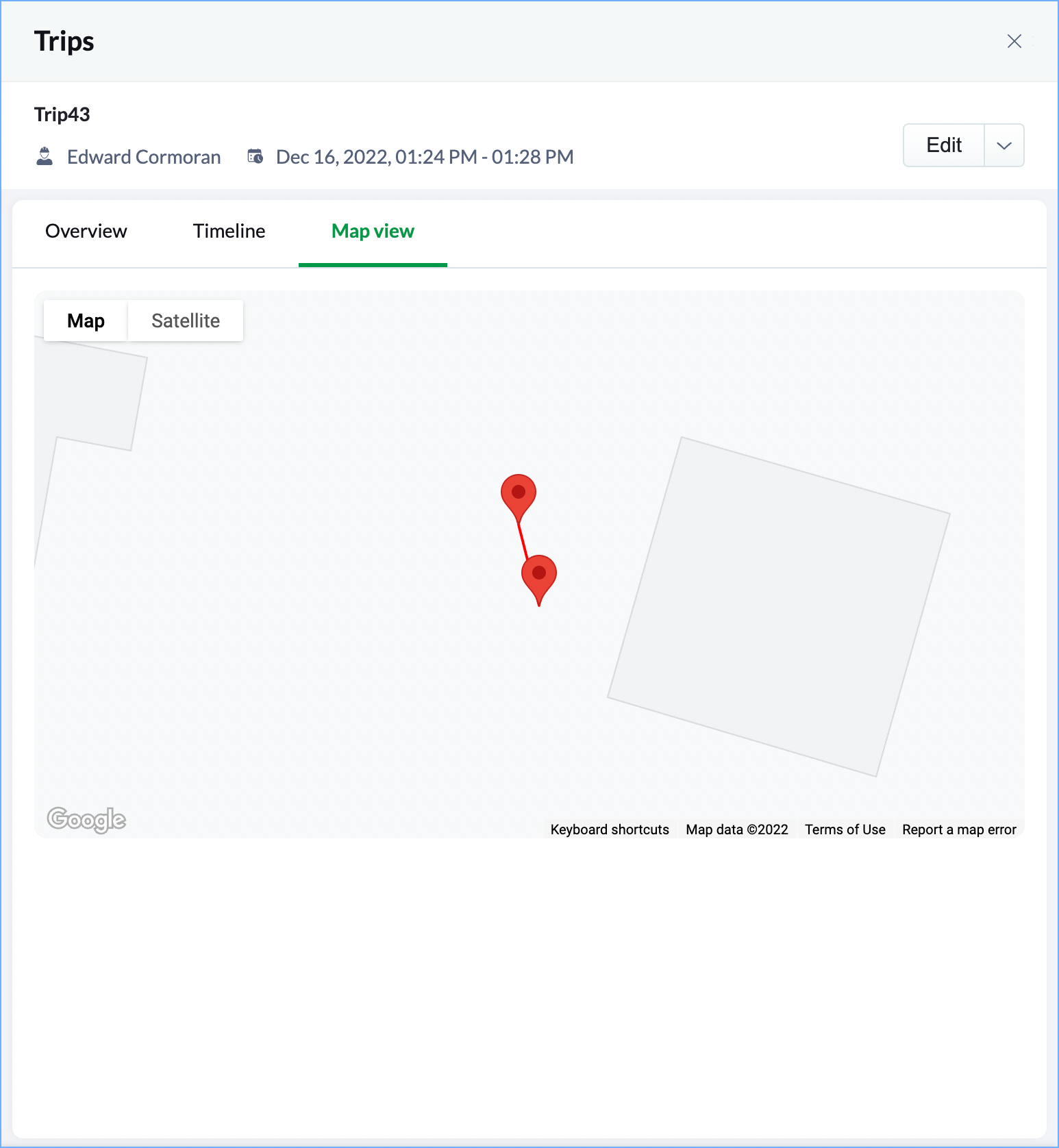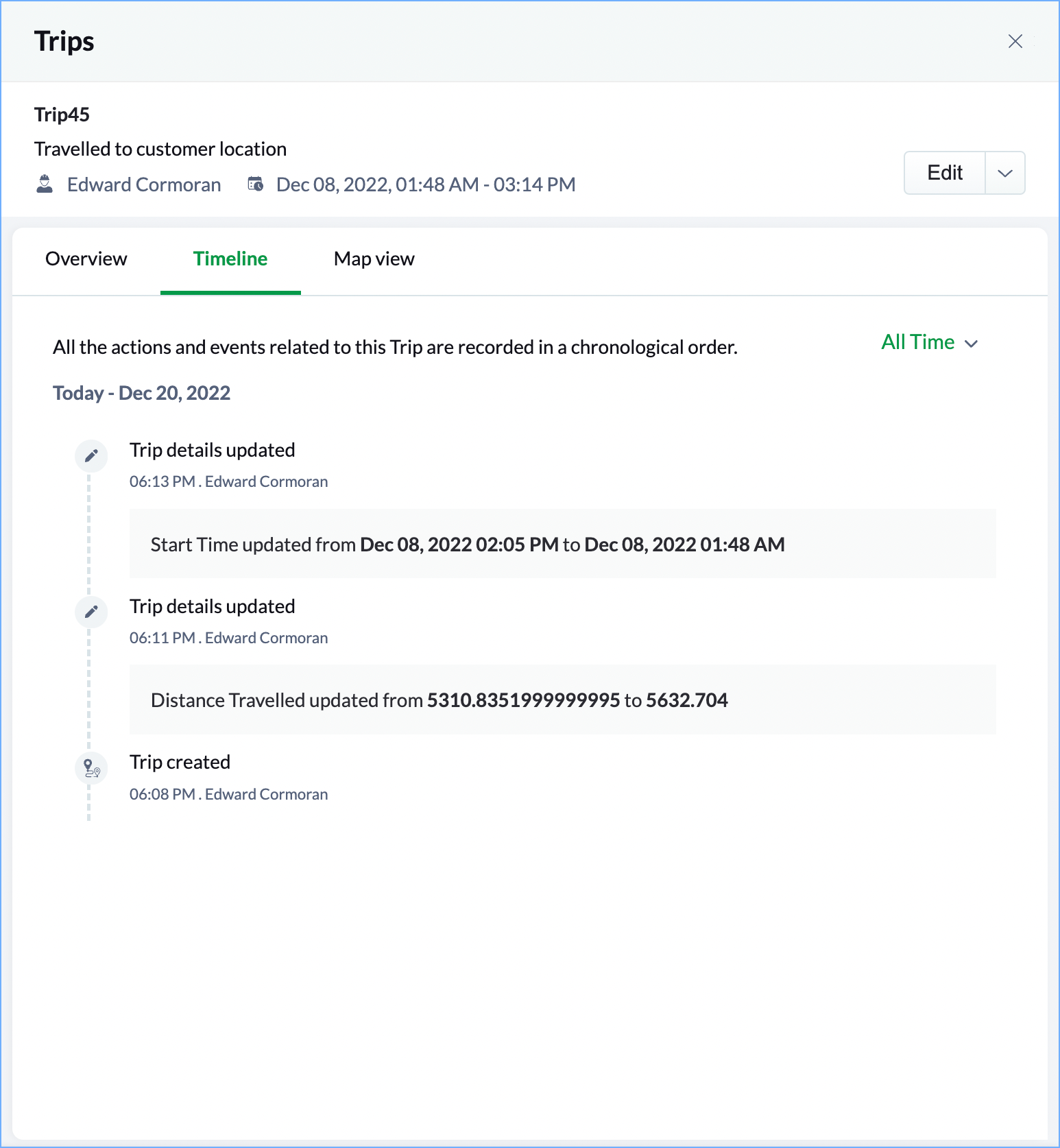 Note: If you edit a trip that was added from the mobile app, then the location data (Map view) in it will be lost.