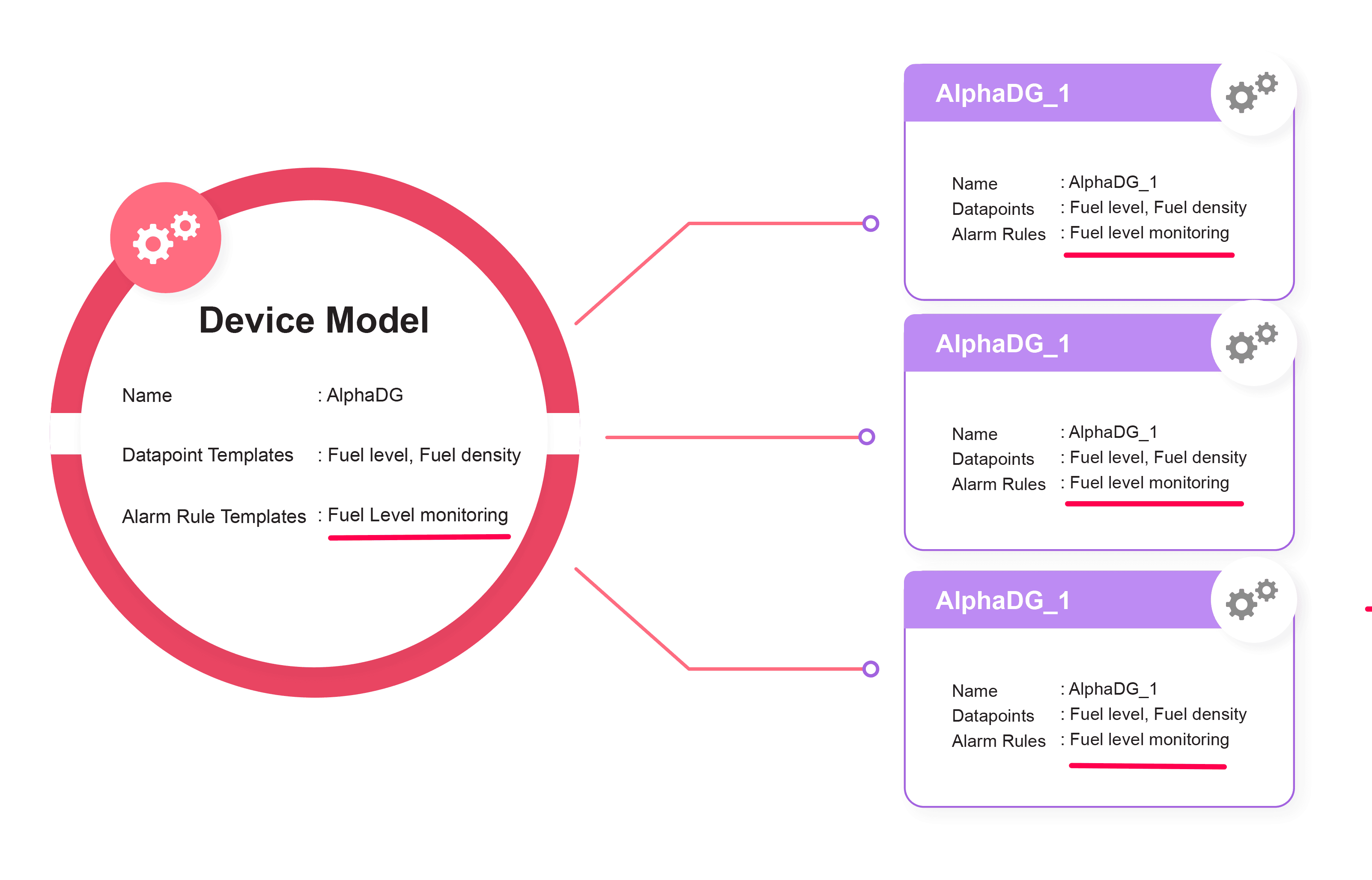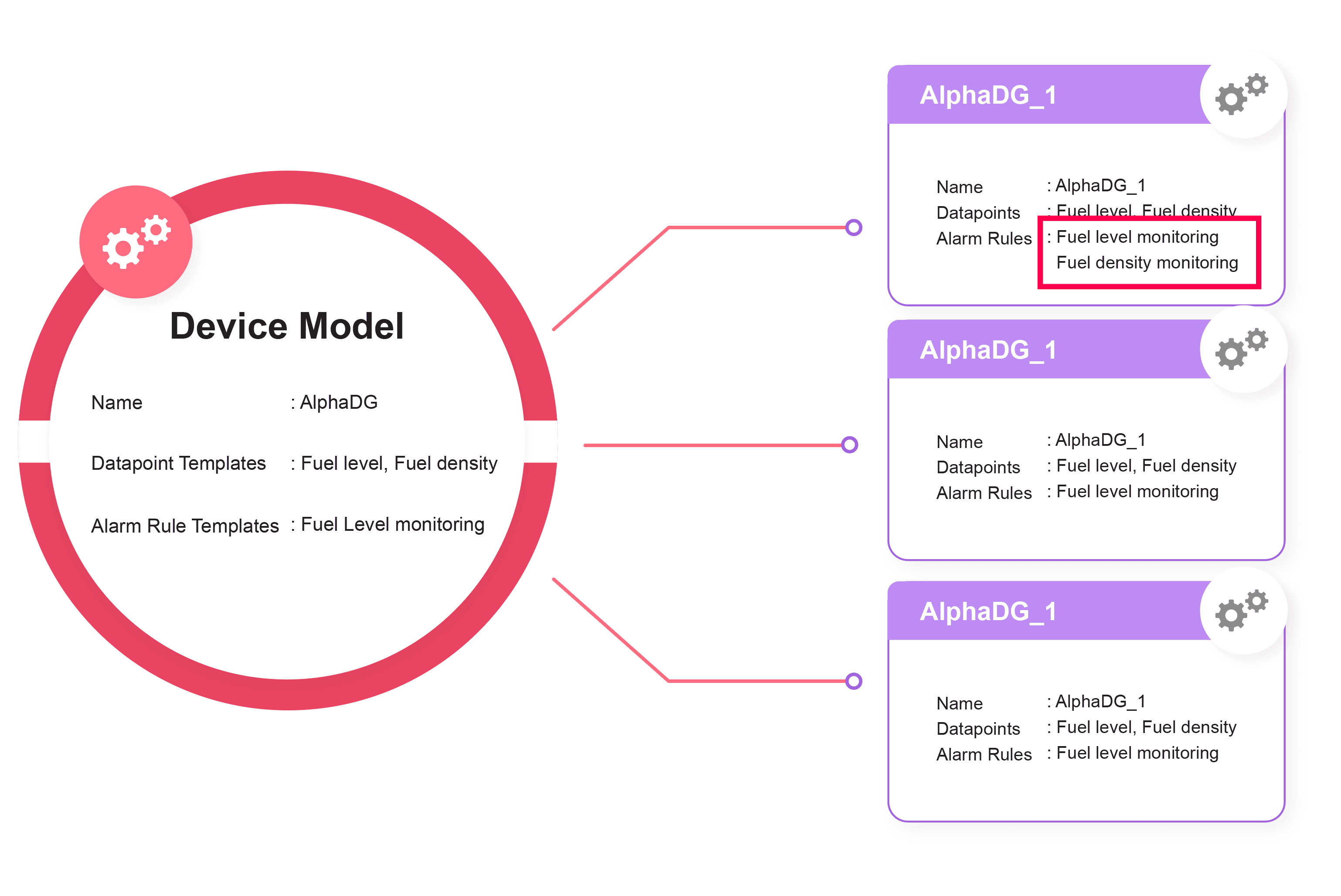 Image: Alarm Rule Templates at the Device Model are present in the devices created from that model.