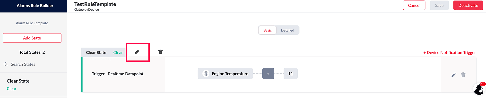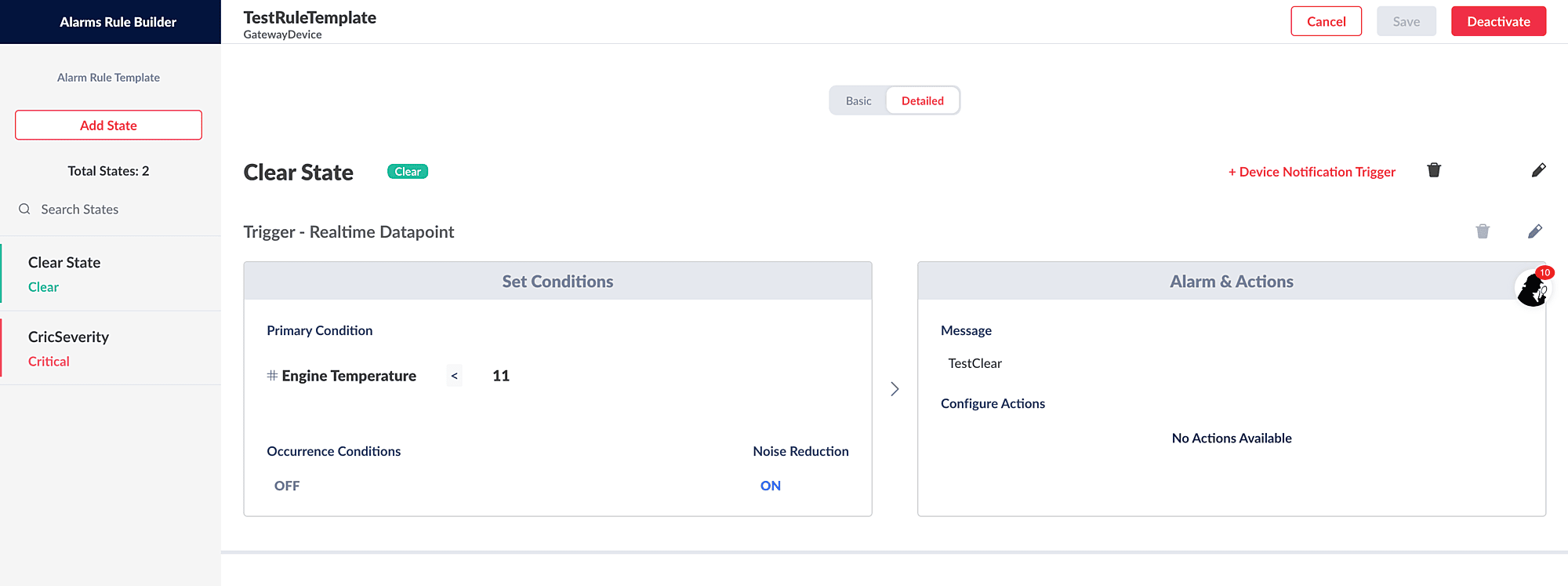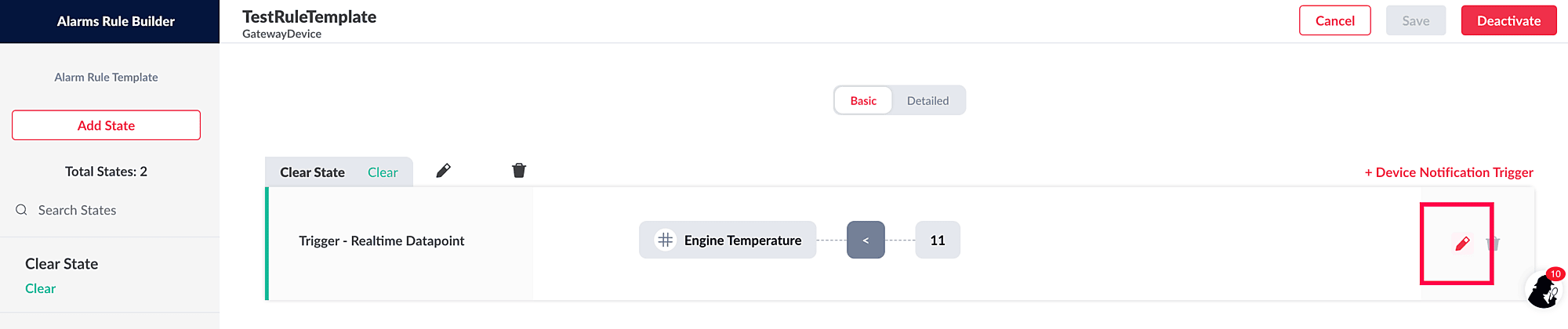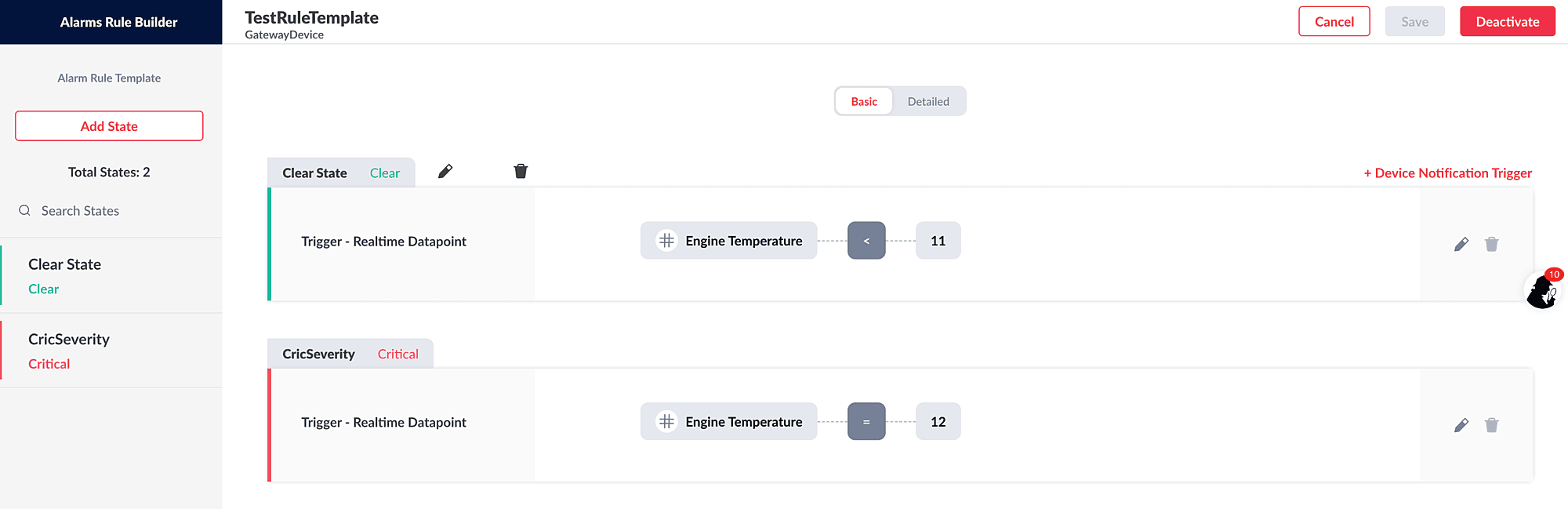 Note: The State and Trigger conditions of the alarm rule template can be modified or deleted in both the Basic and Details views.