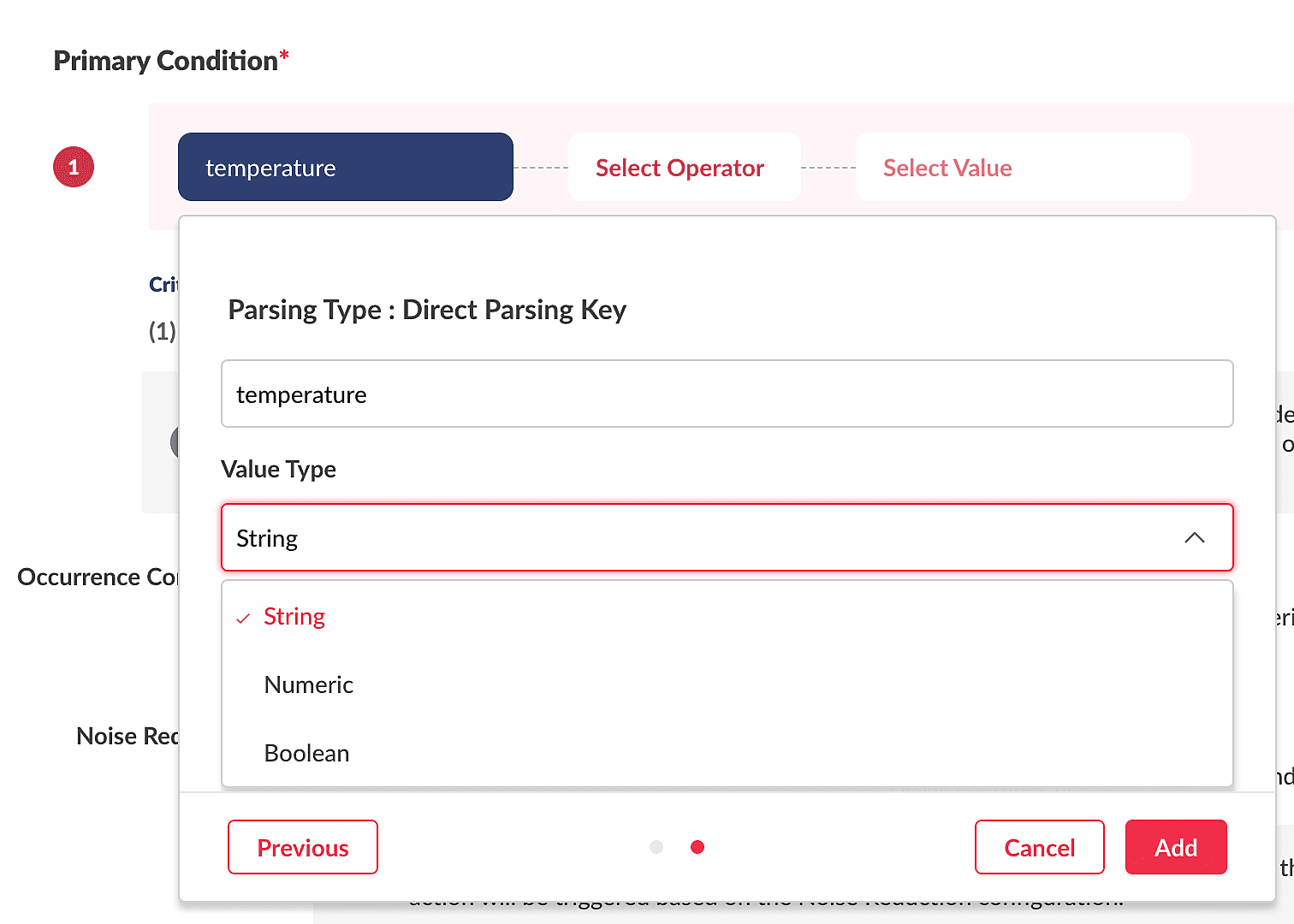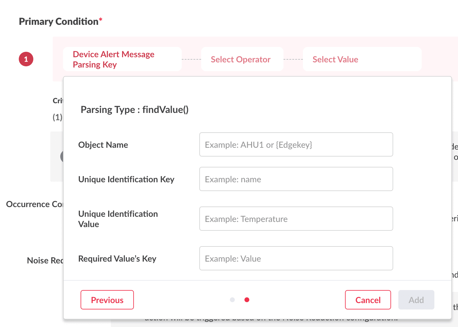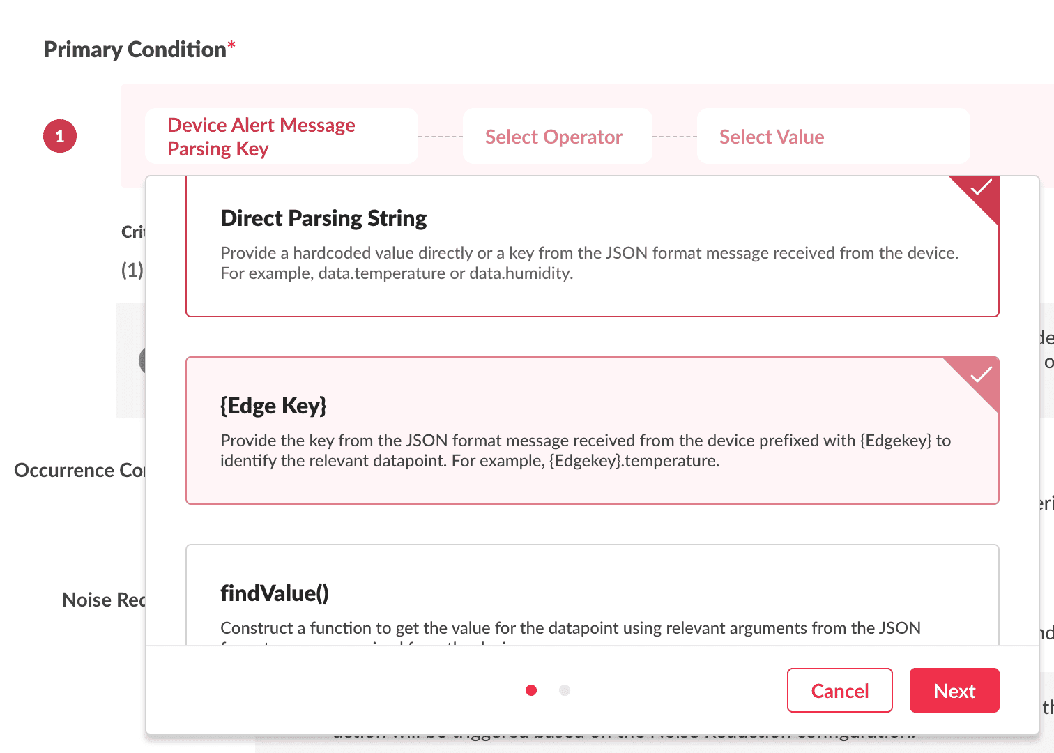 *When device is selected as the Model for the Alarm Rule, only two parsing key options i.e. Direct Parsing String and findValue() will be available.