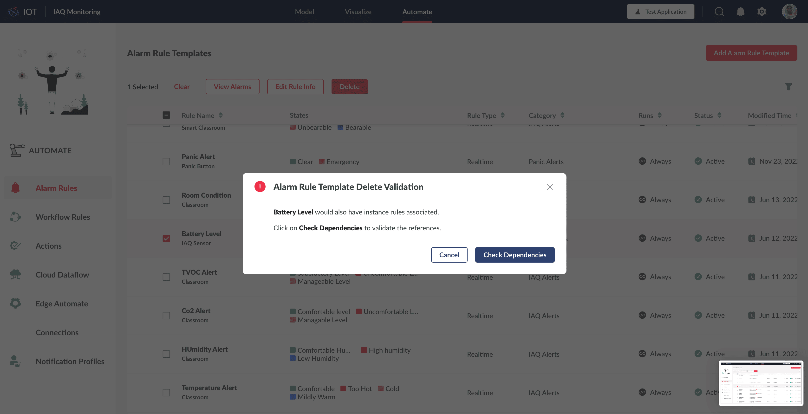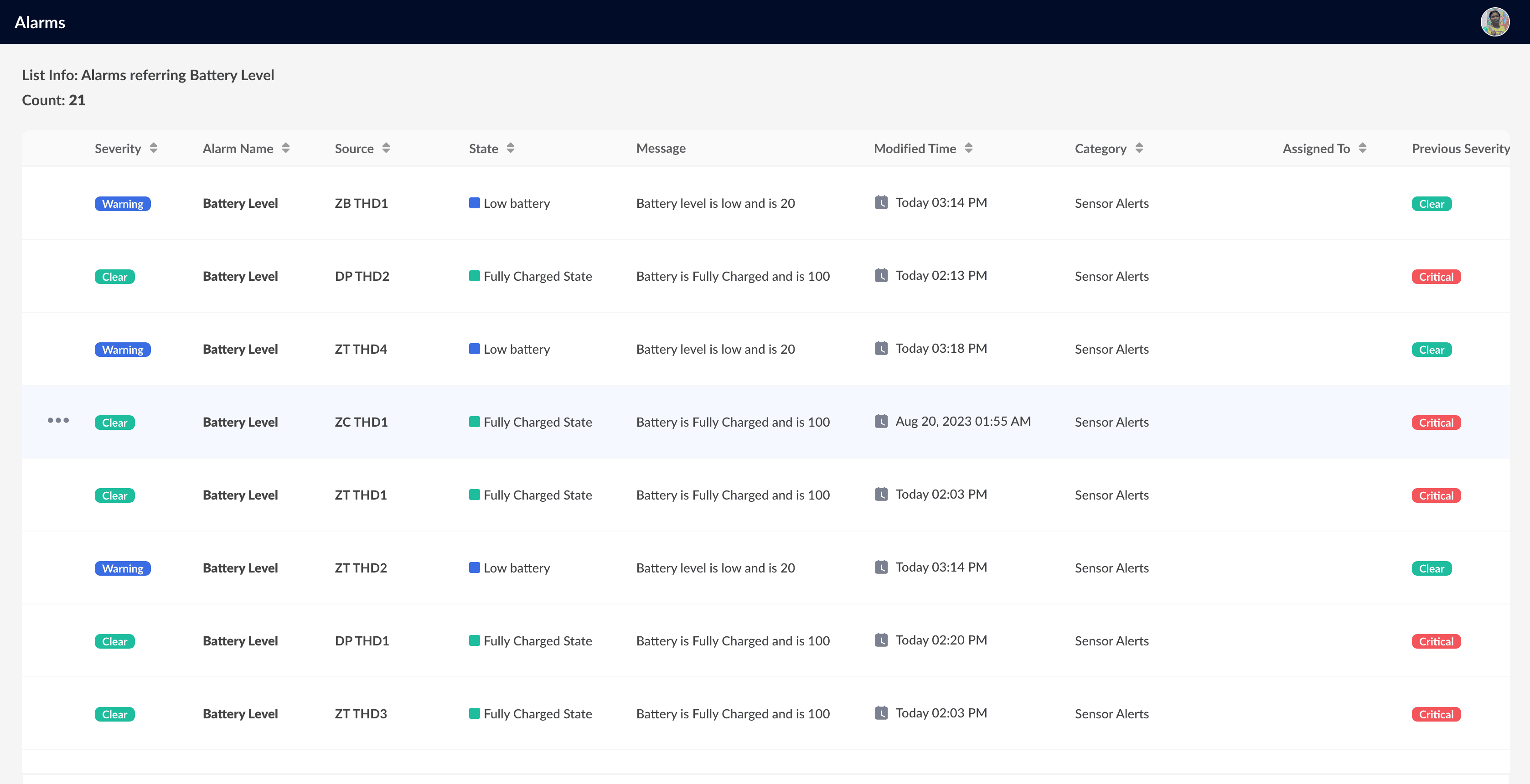 Note: The Alarm Rule template for a particular device, asset, or location can be viewed from the respective Alarm Rules in the Summary page.