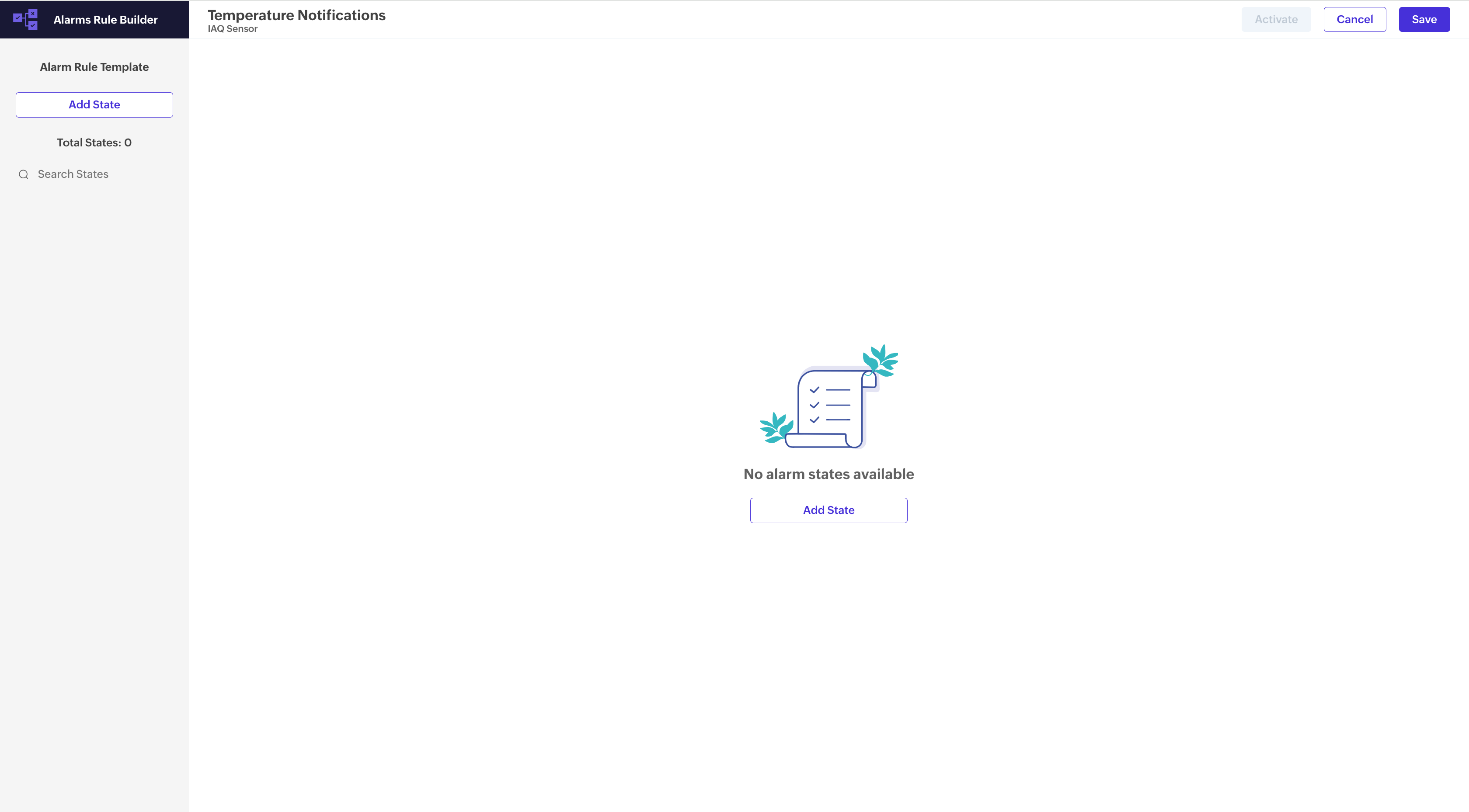 2. Click Add State on the left pane. This opens the Alarm Builder form.