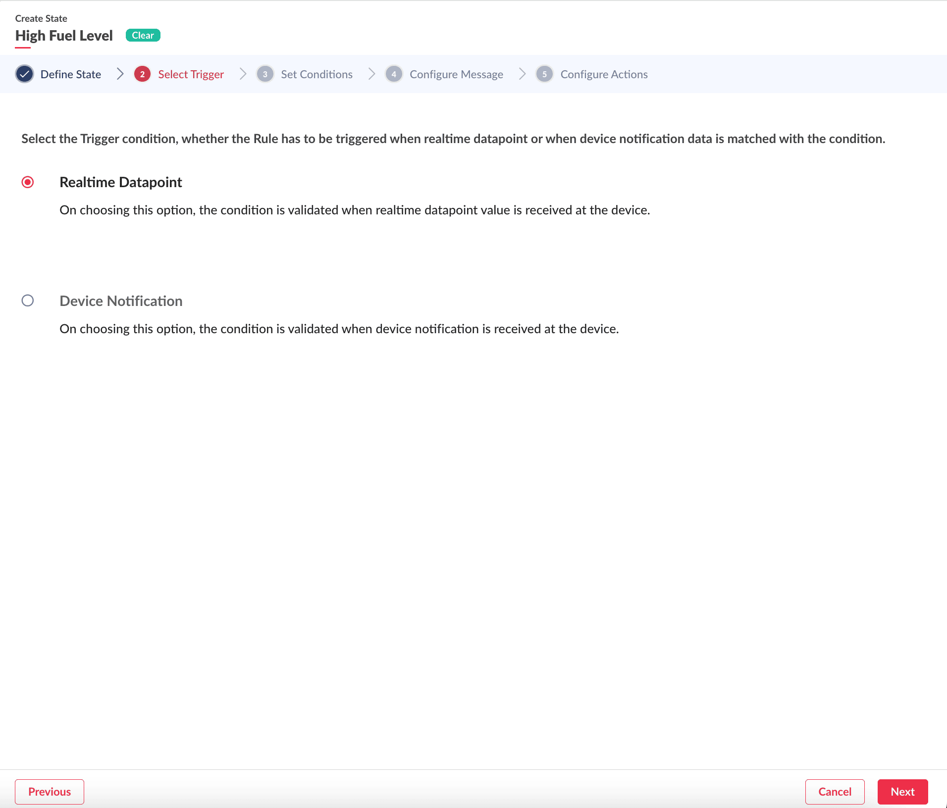 1. Select the rule trigger type whether Realtime Datapoint or Scheduled KPI Datapoint.