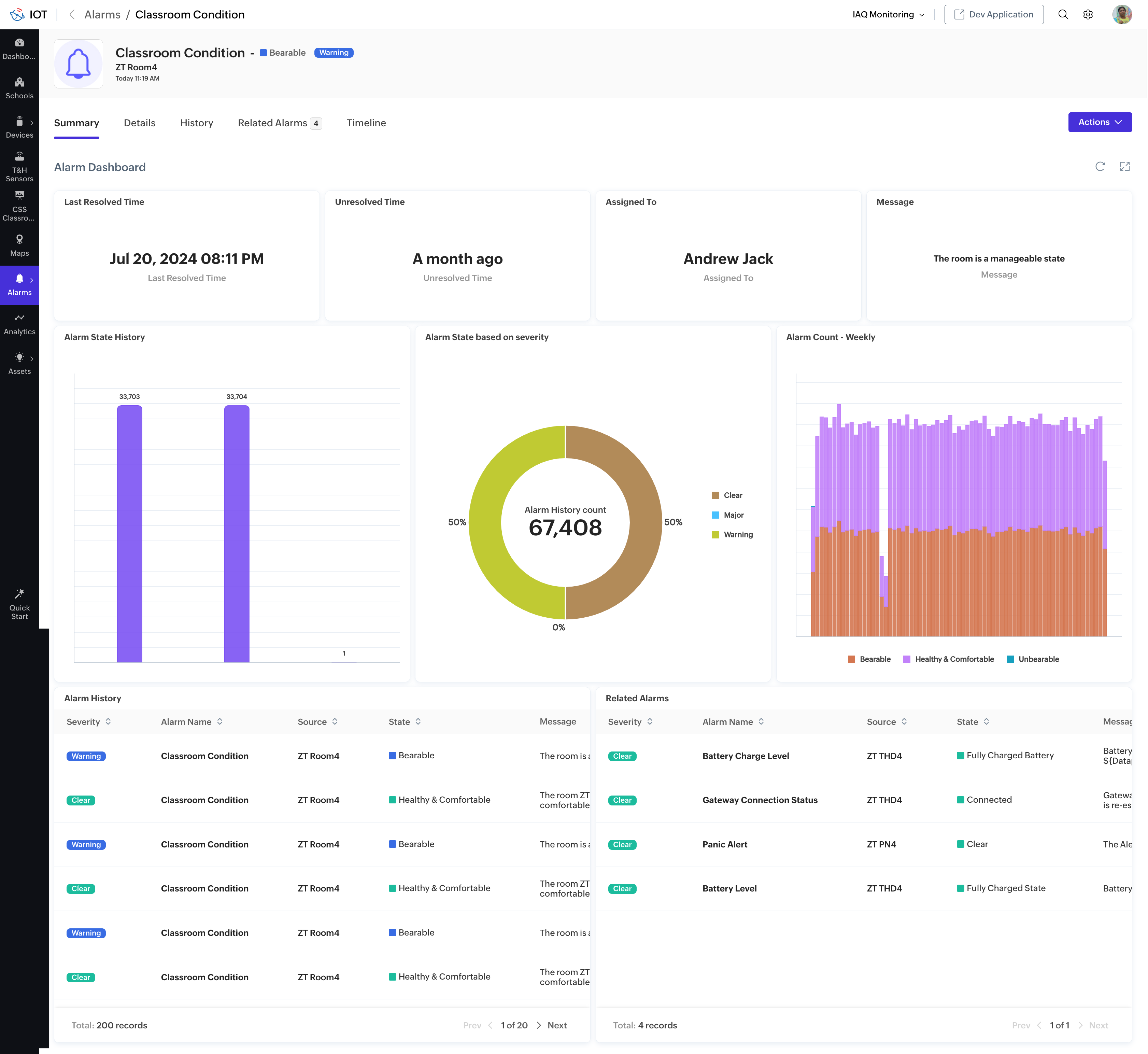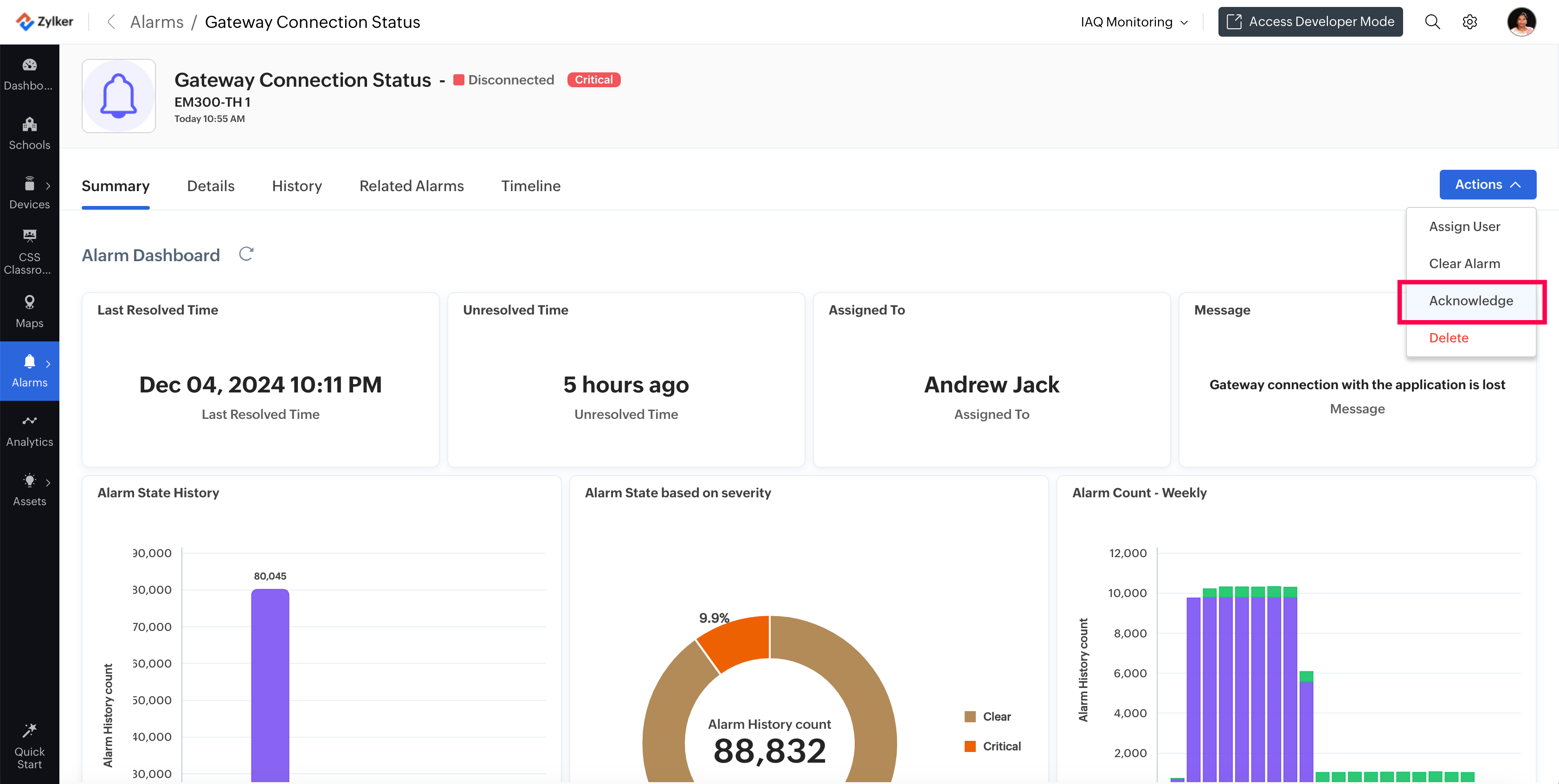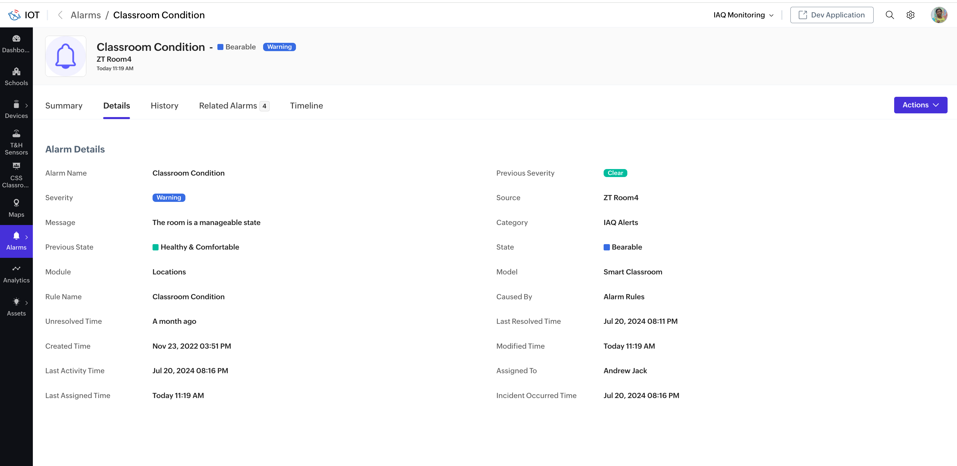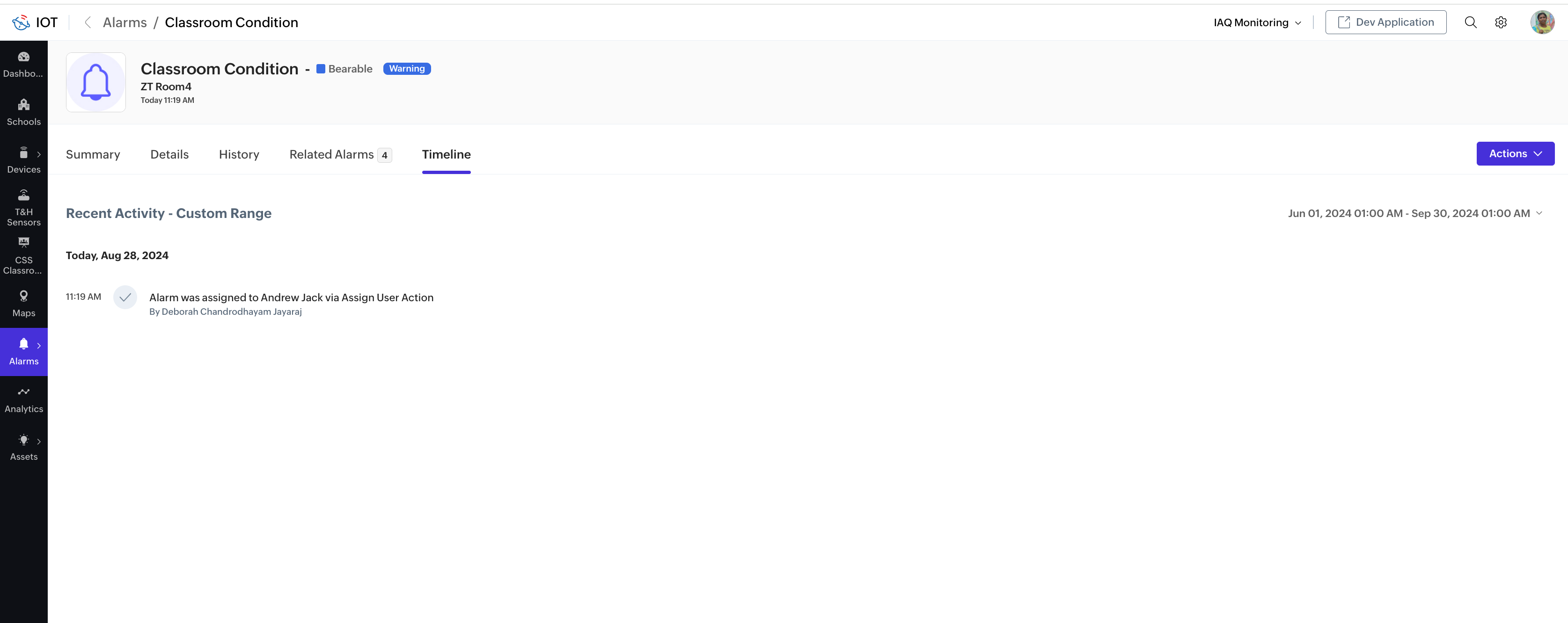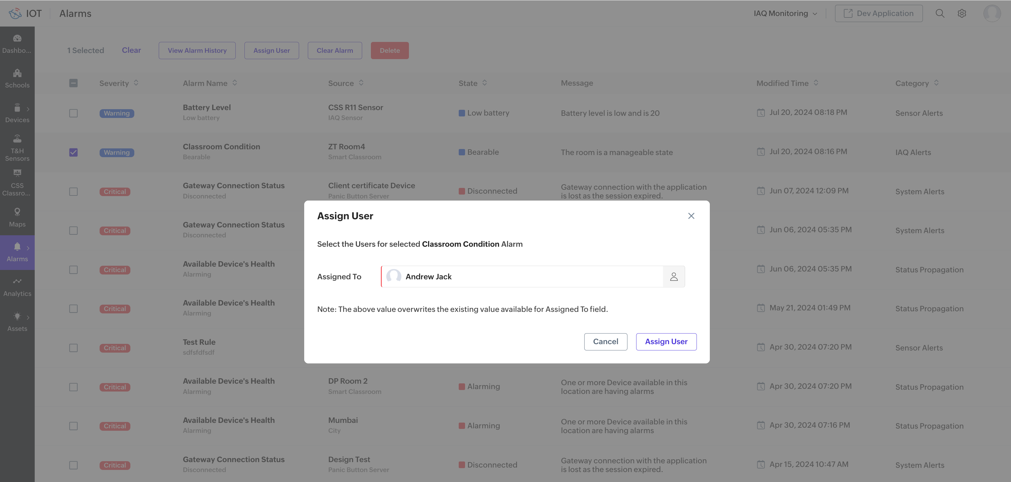 Info: Alarms can be manually assigned to users to send them notifications, prompting them to take the necessary actions. This immediate notification ensures that the user is aware of the problem and can quickly respond to mitigate any potential impact.