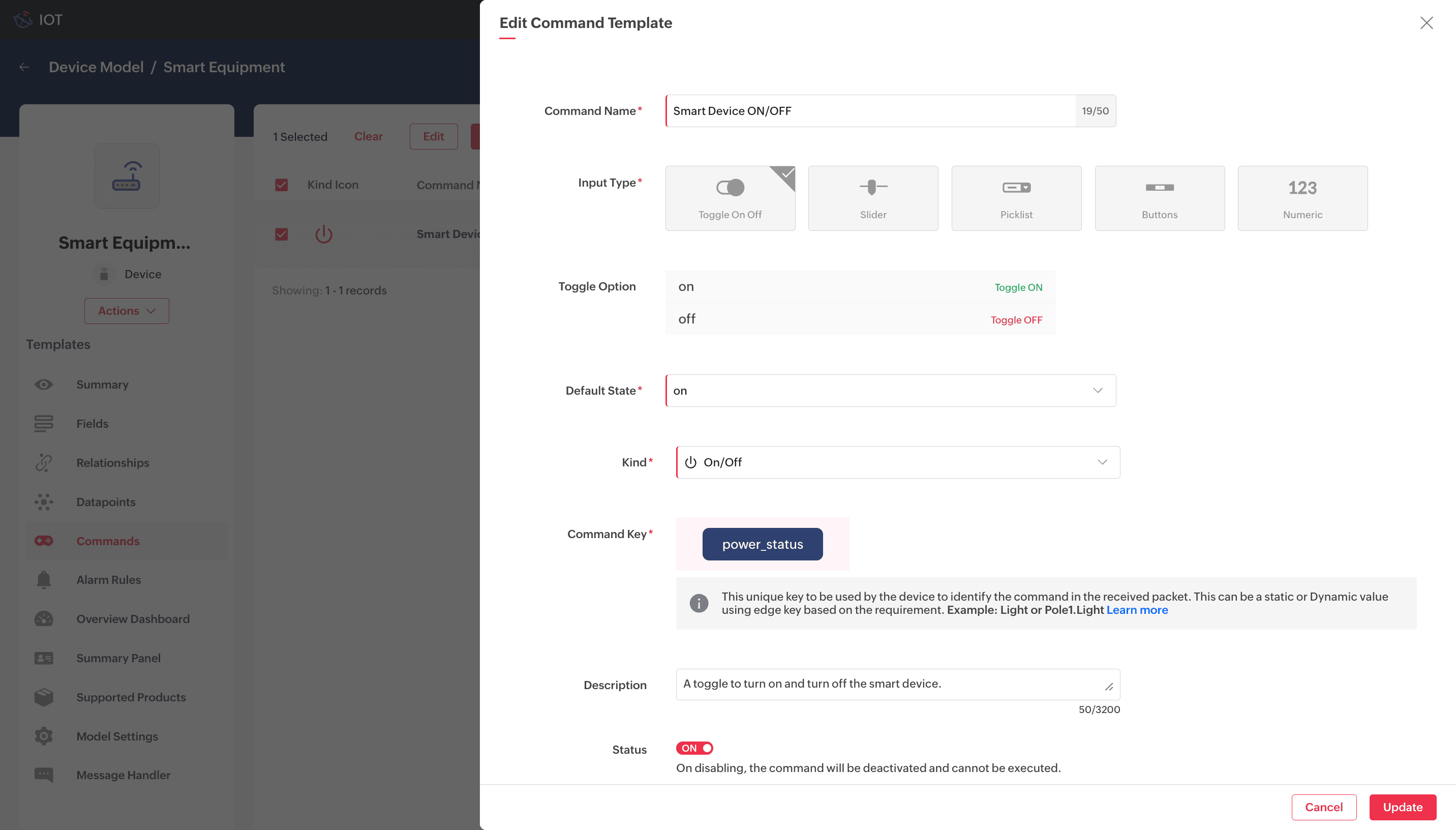 3. Click the name of the model you want to add the Command Template to. For this illustration, the device model Smart Equipment is considered.