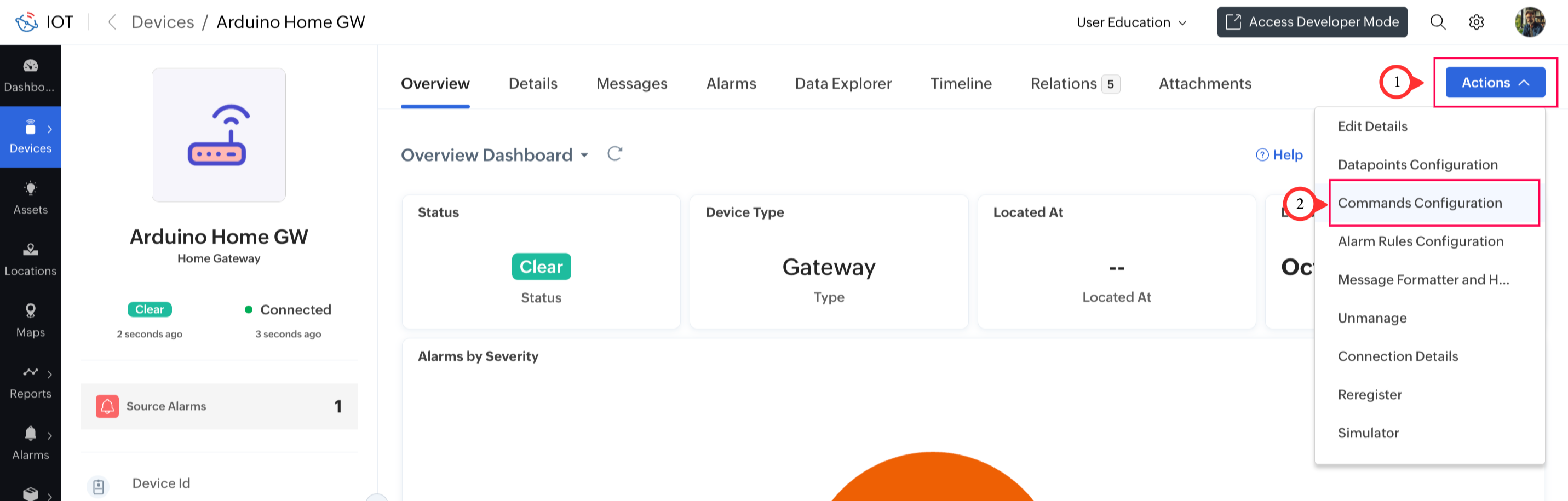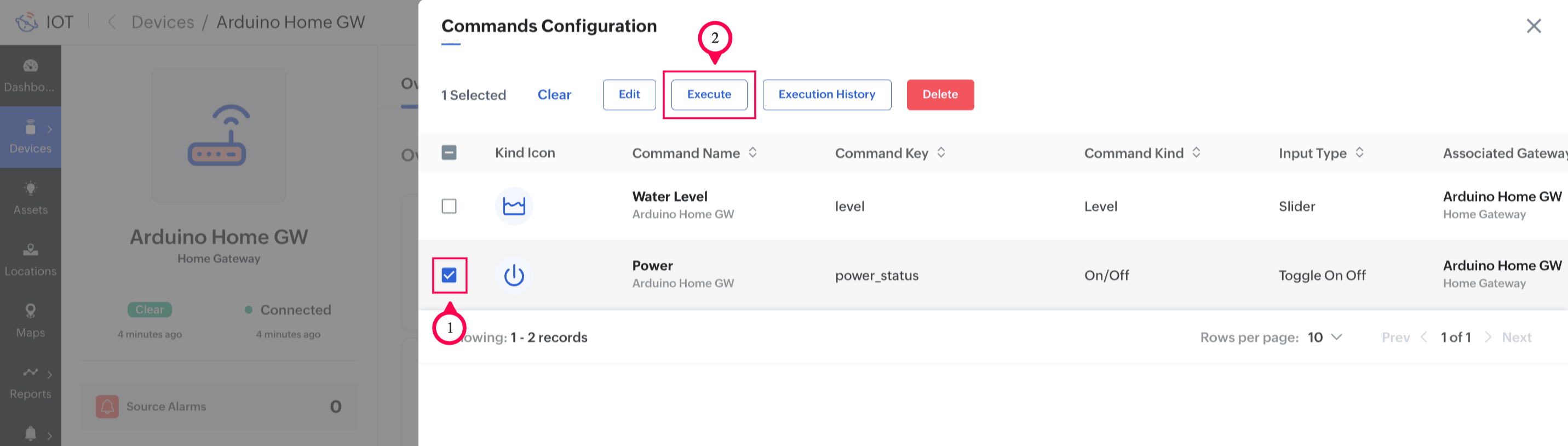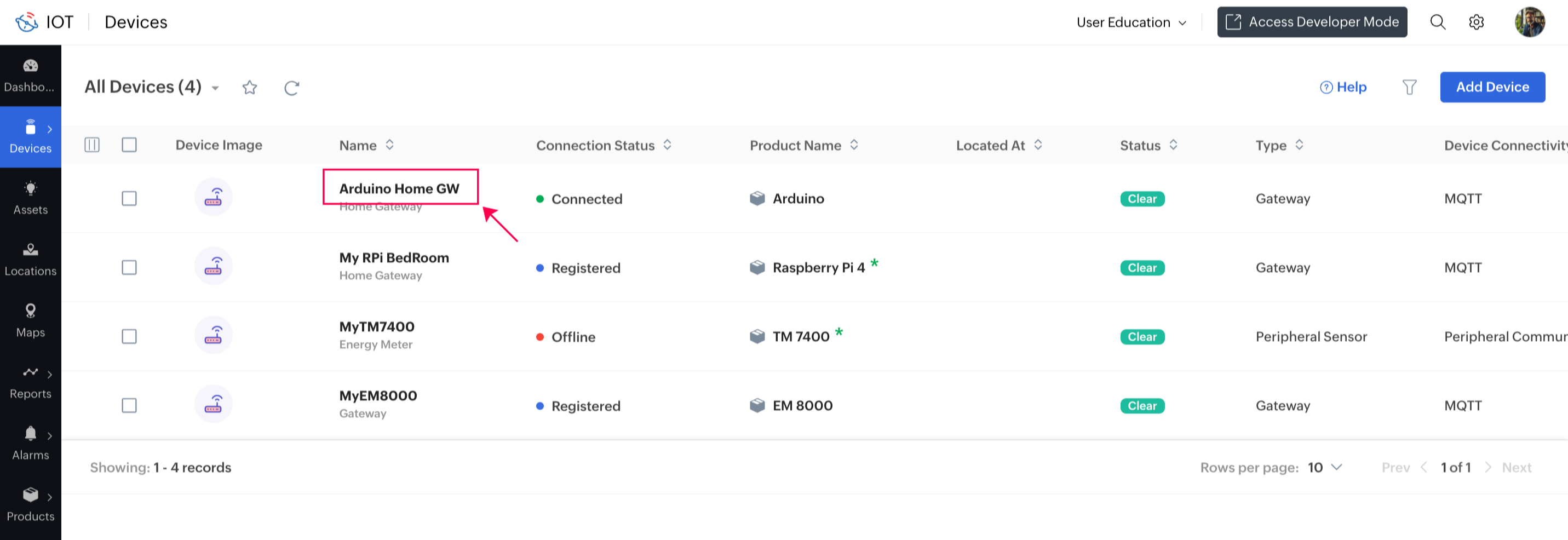 Click on the device for which the command custom function needs to be associated. For this illustration, Arduino Home GM is selected.