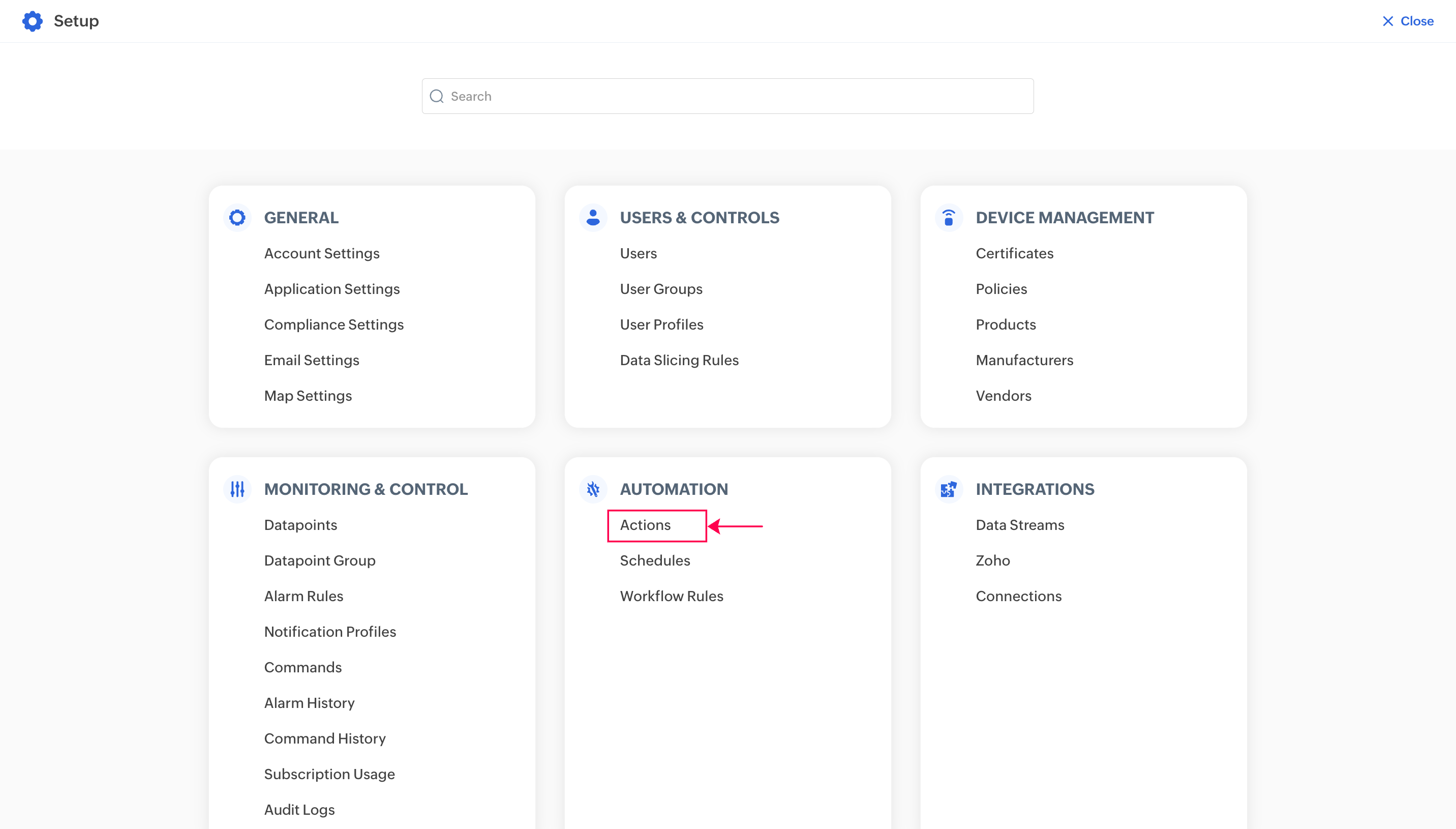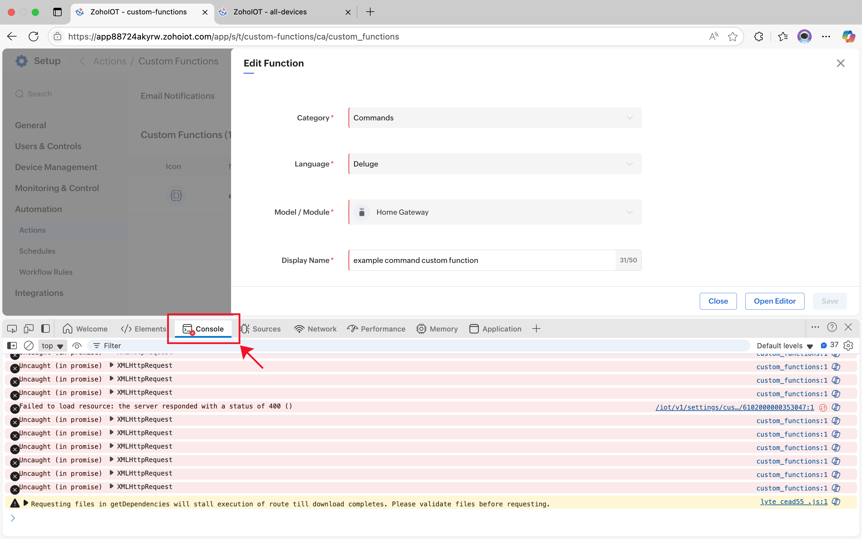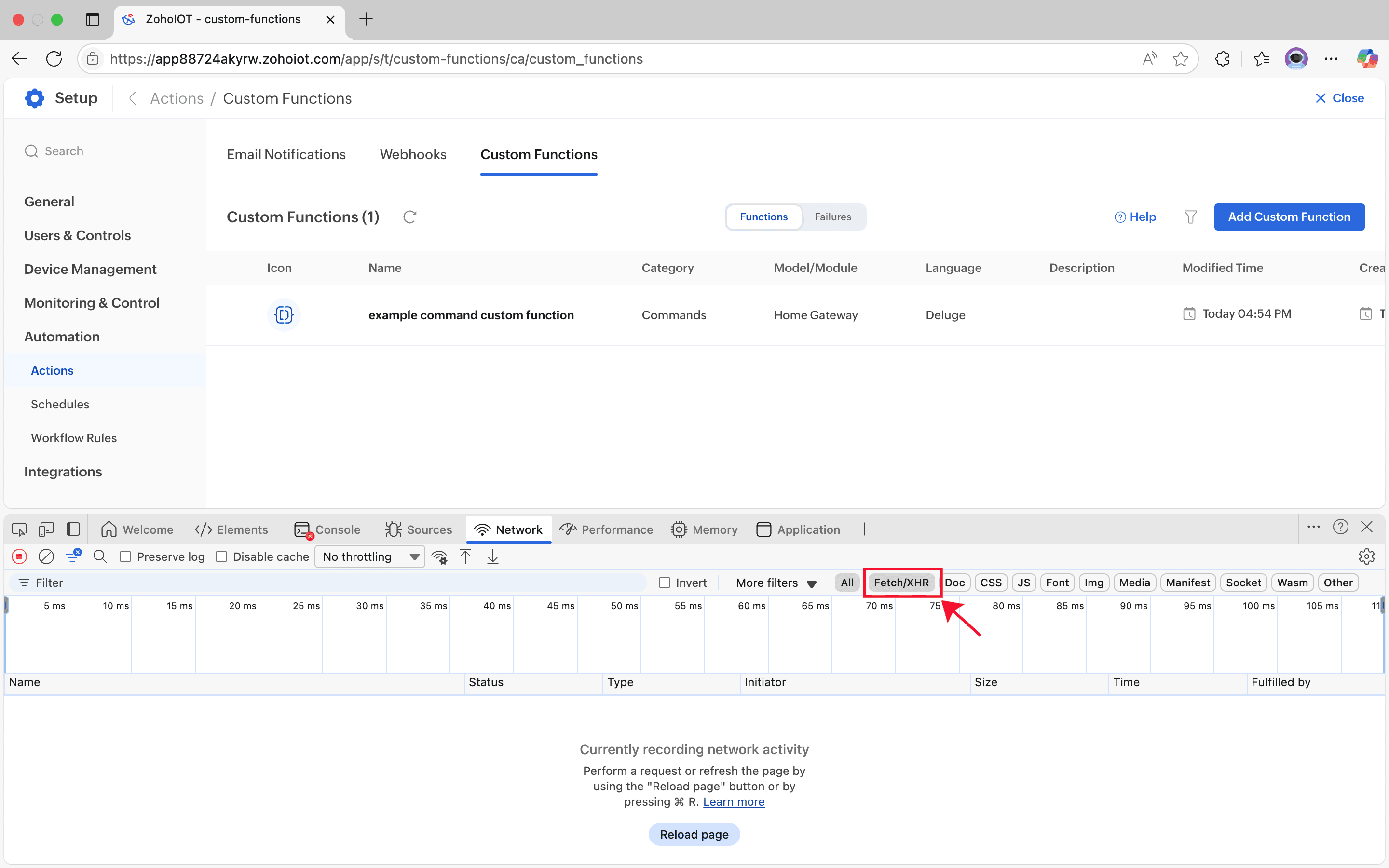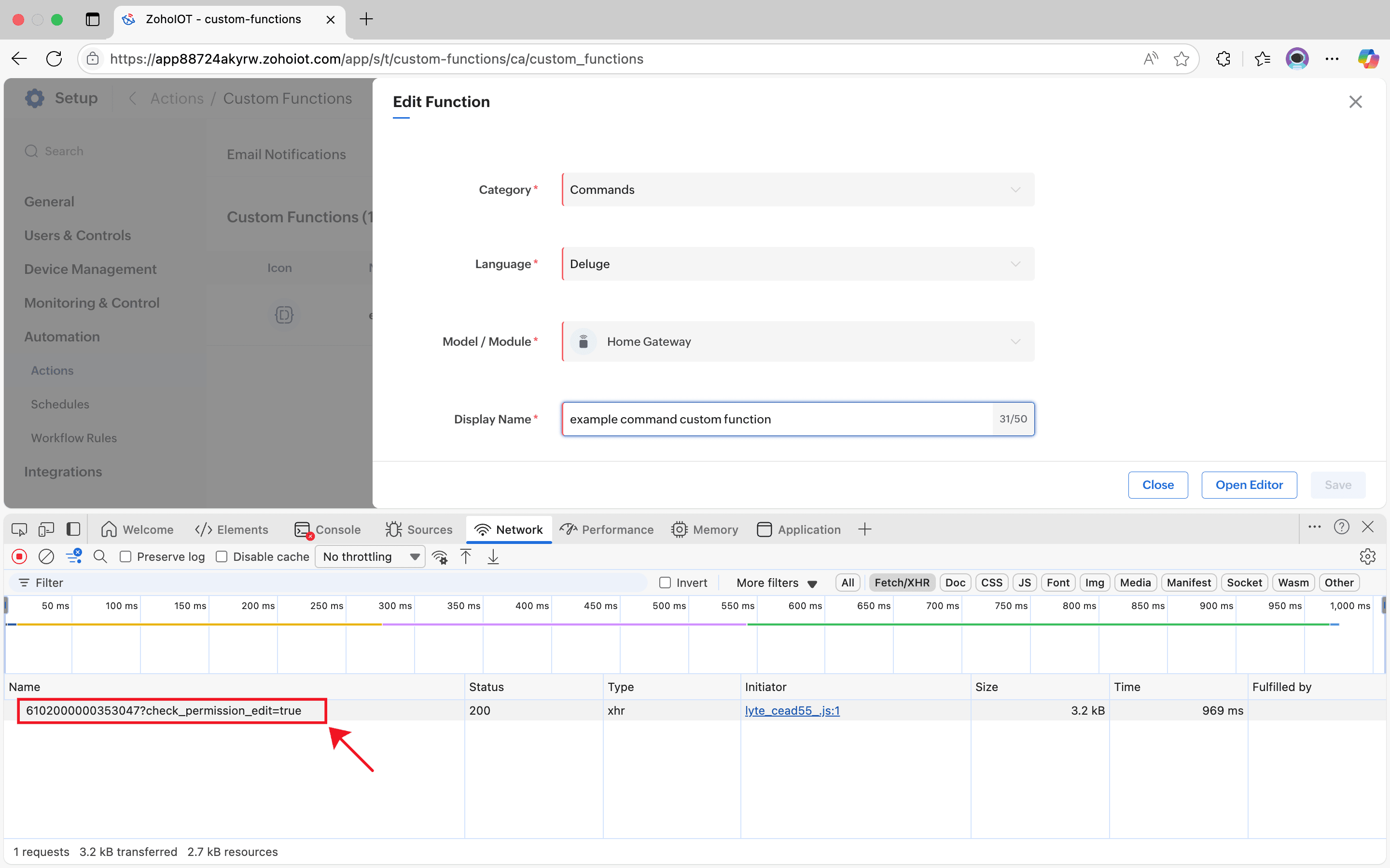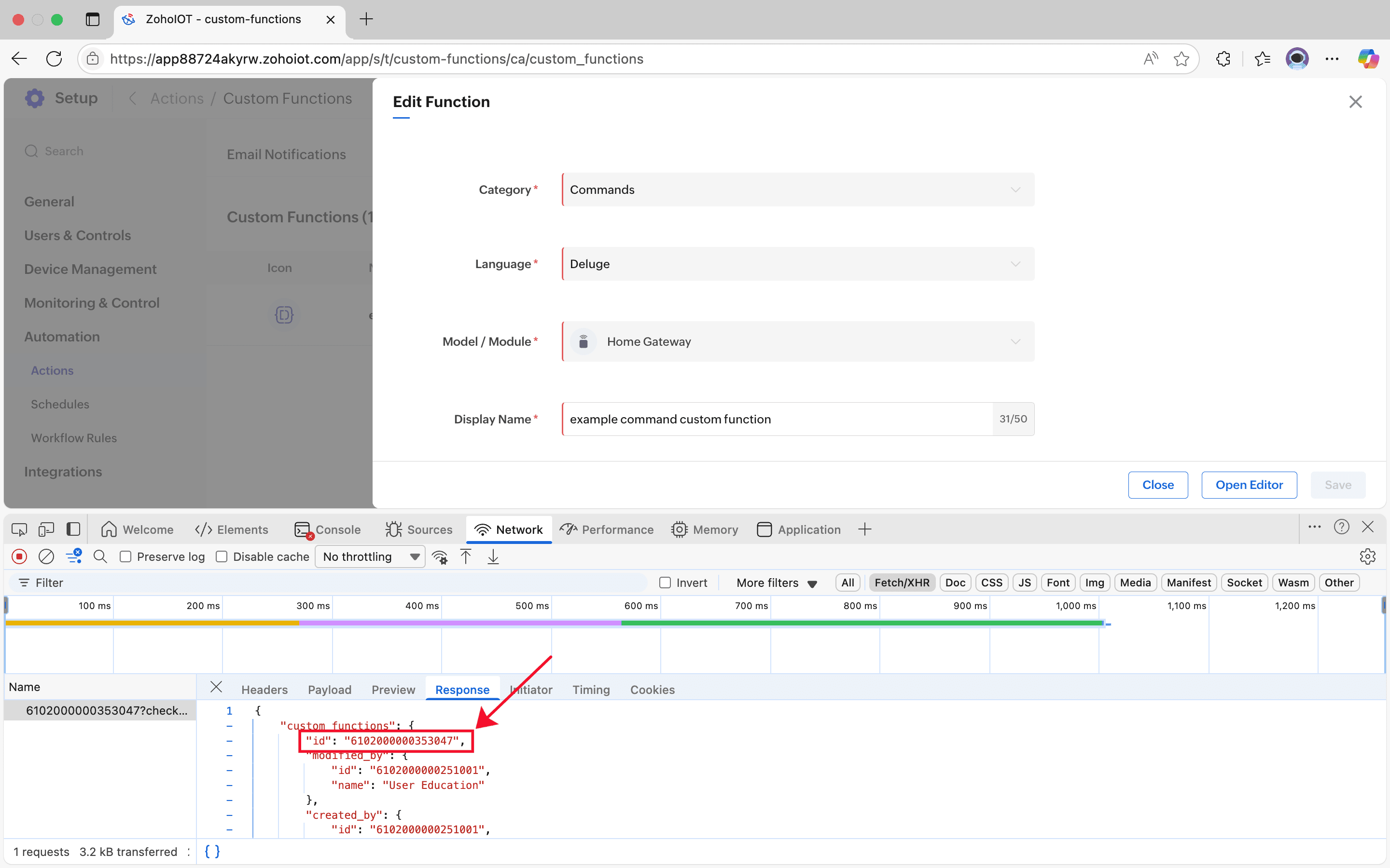 Note: The Command Custom Function feature is currently in its beta stage with further enhancements planned in the product roadmap. Contact support@zohoiot.com for more details.