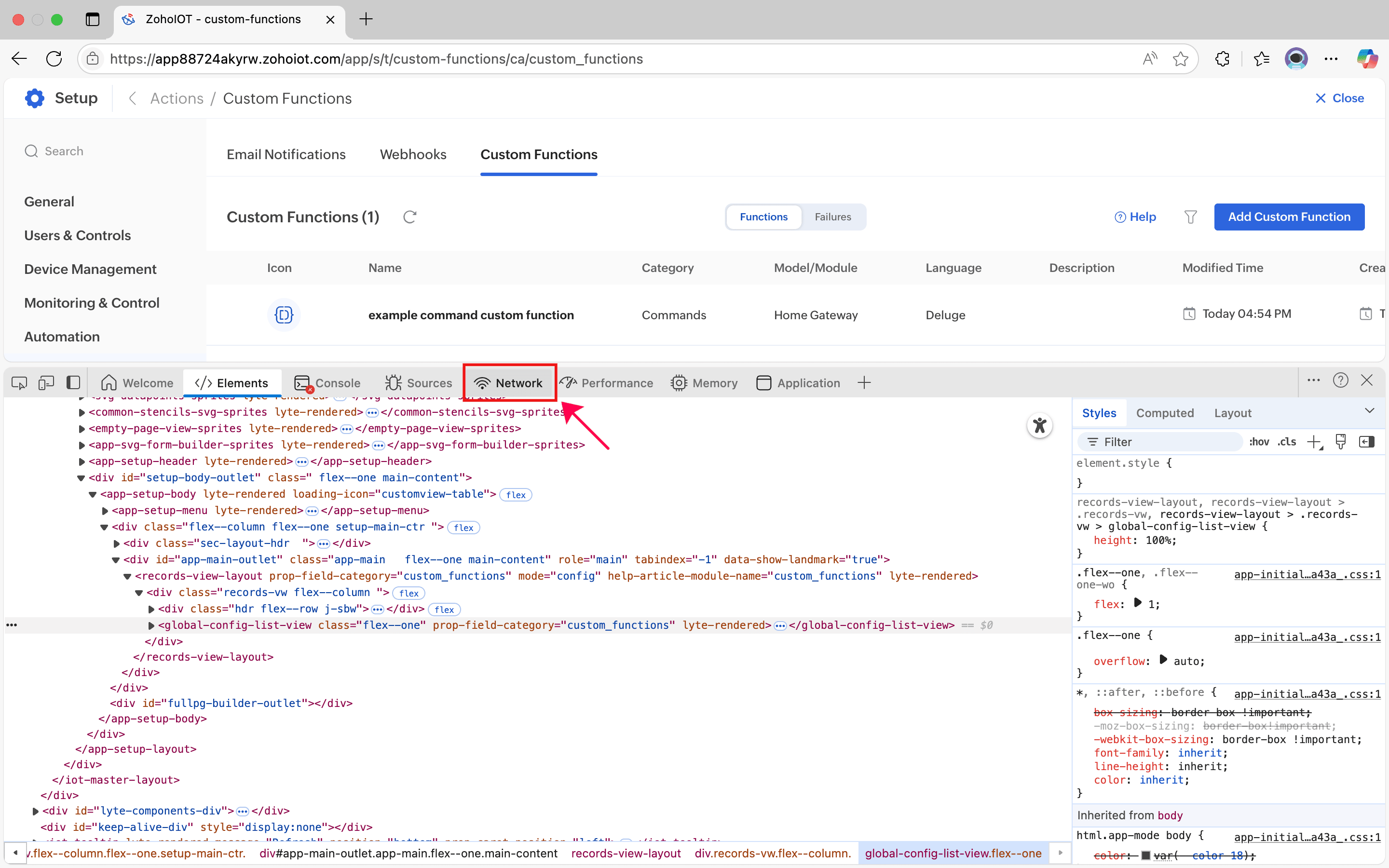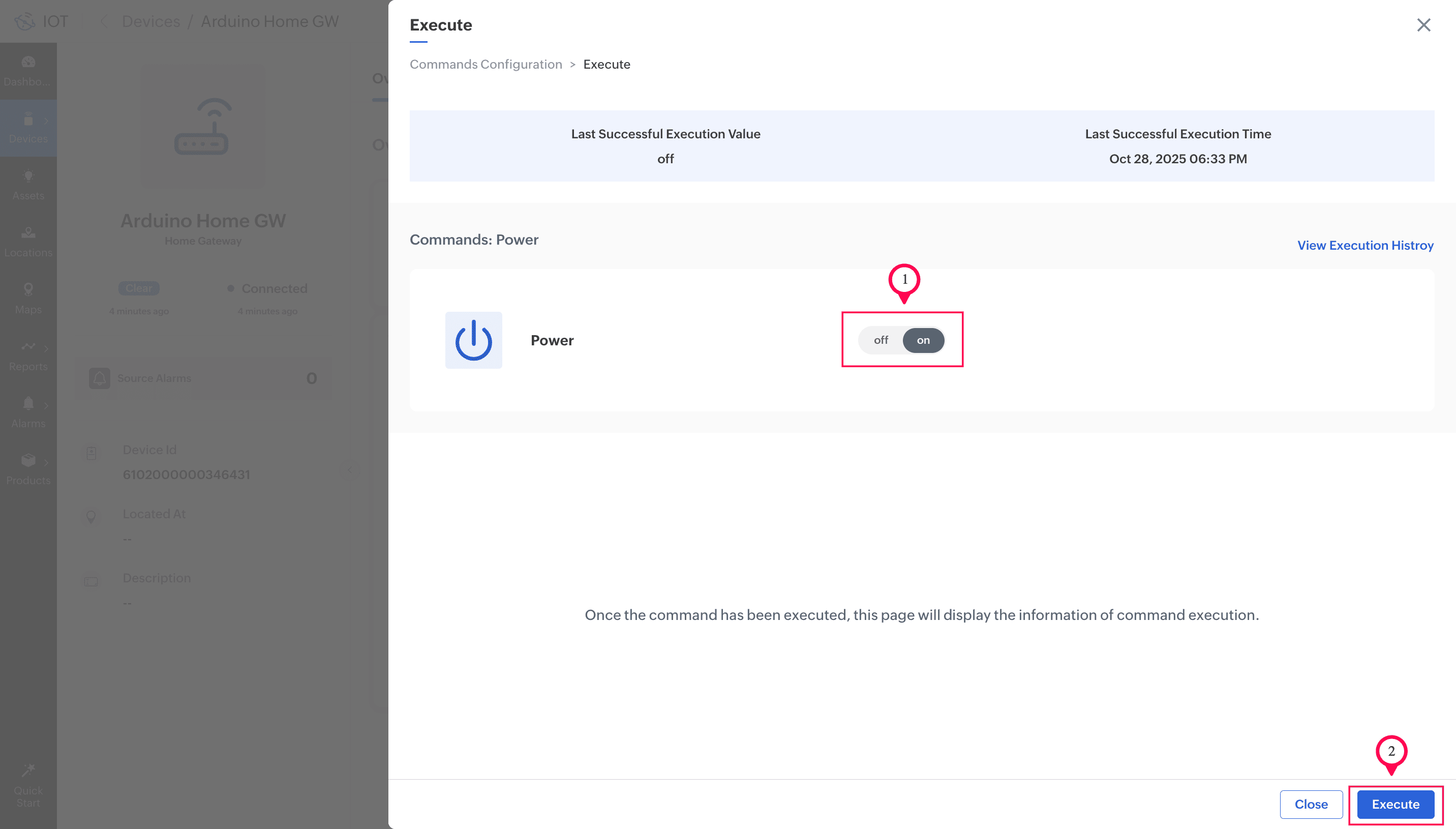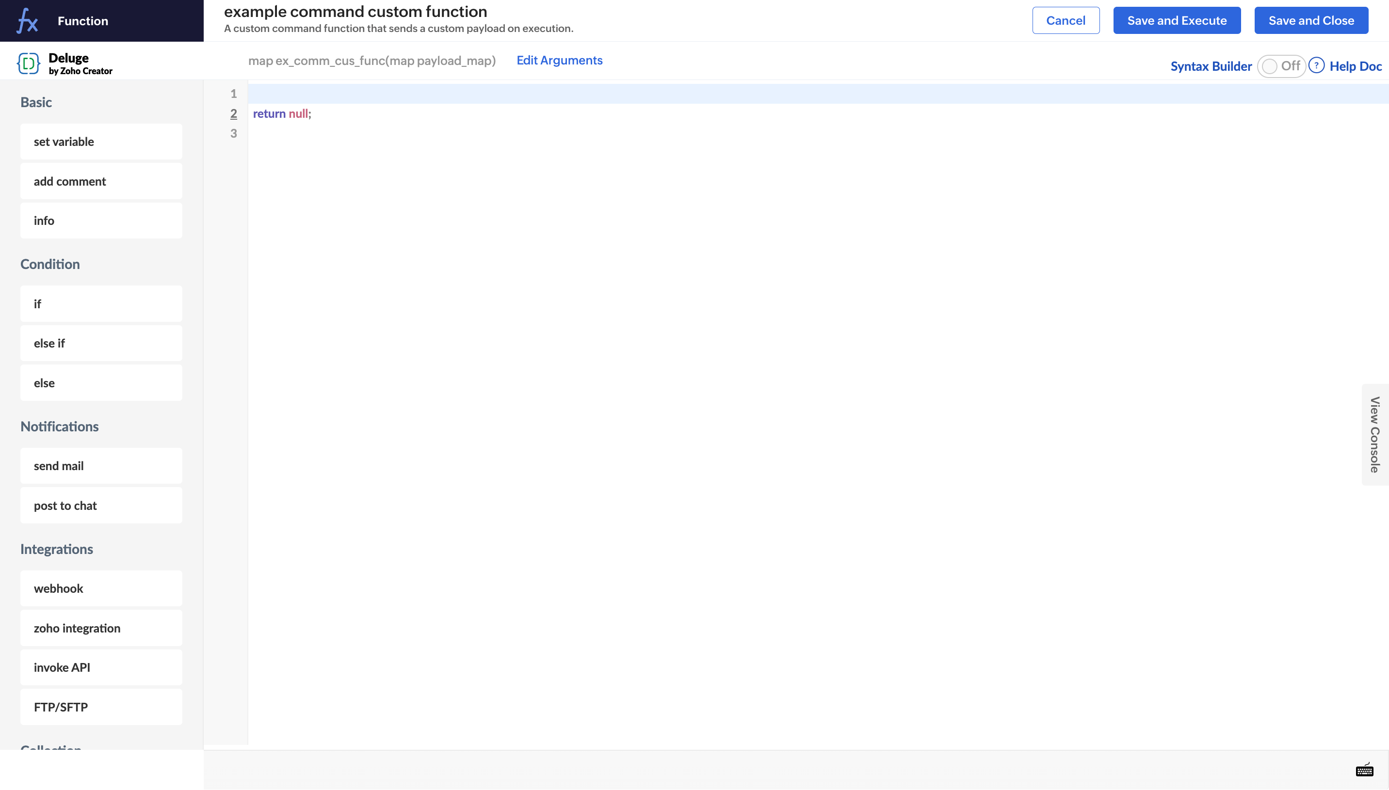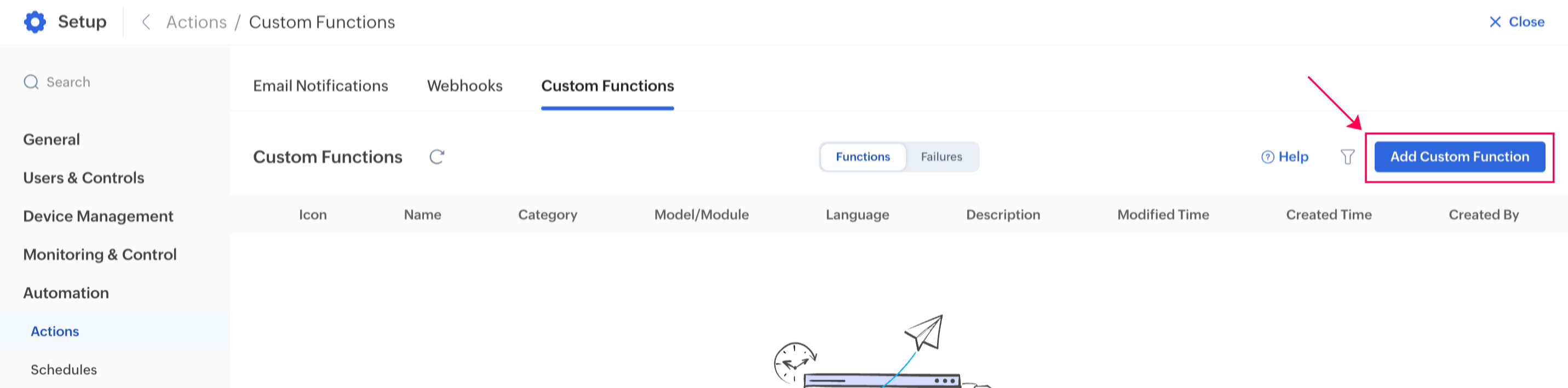 Note: The Command Custom Function feature is currently in its beta stage with further enhancements planned in the product roadmap. Contact support@zohoiot.com for more details.