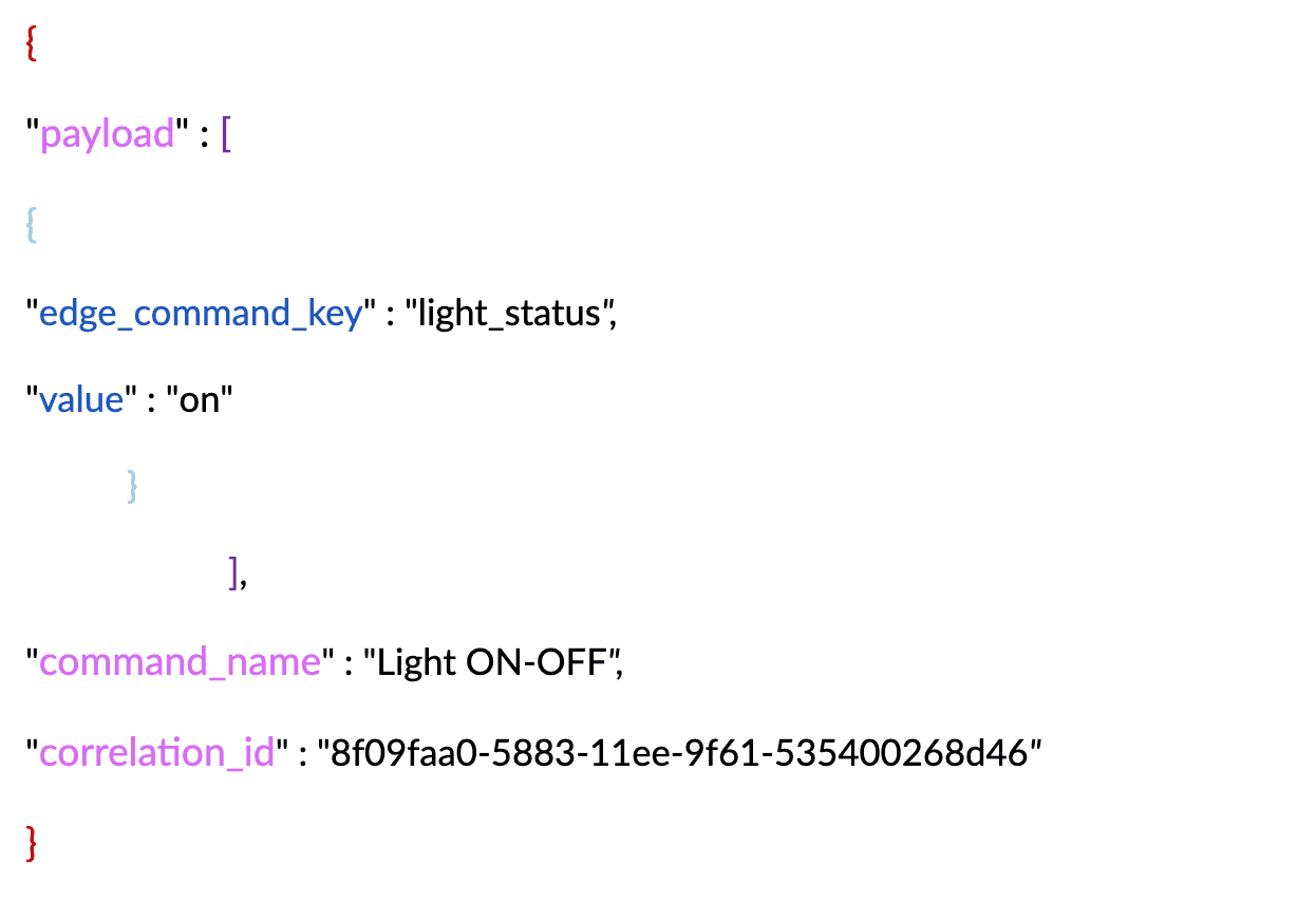 response.put("send_to_device",true);response.put("post_function_ack",true); //handles acknowledgement internallyresponse.put("ack_status",1001); //acknowledgement set to successcommand_key = payload_map.get("commands").get(0).get("payload").get(0).get("edge_command_key");command_value = payload_map.get("commands").get(0).get("payload").get(0).get("value")response.put("command_payload",{command_key:command_value});return response;
