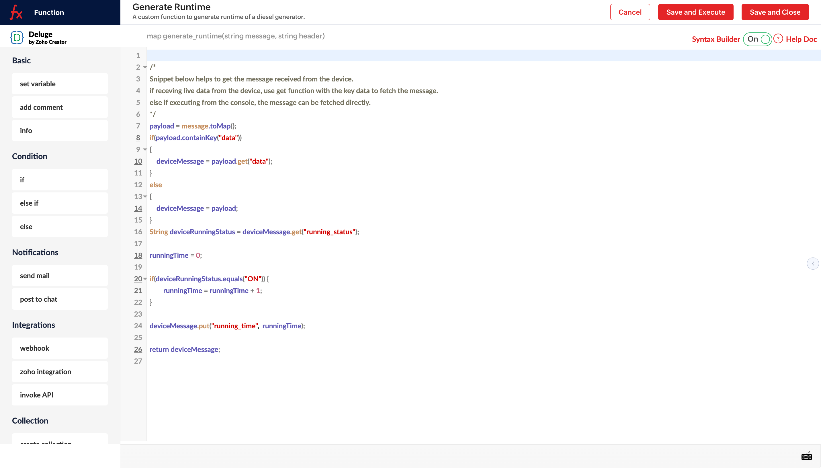 Adding and managing custom functionsSaving and executing custom functionsDeluge Scripting Language