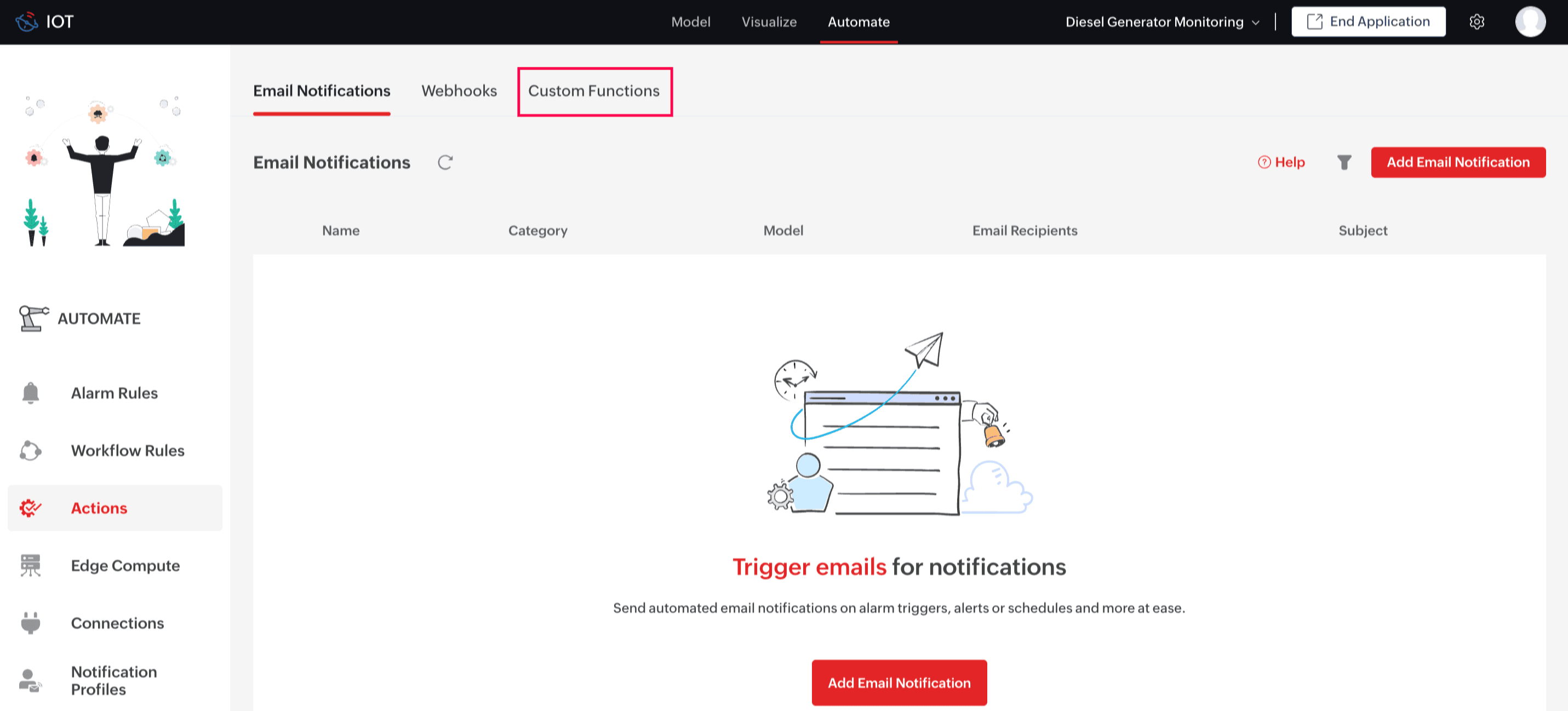 A custom function can be added within the developer application for a specific model or module. You can configure the custom function to meet the specific requirements of a trigger or feature. Once created, this custom function will be available in ...