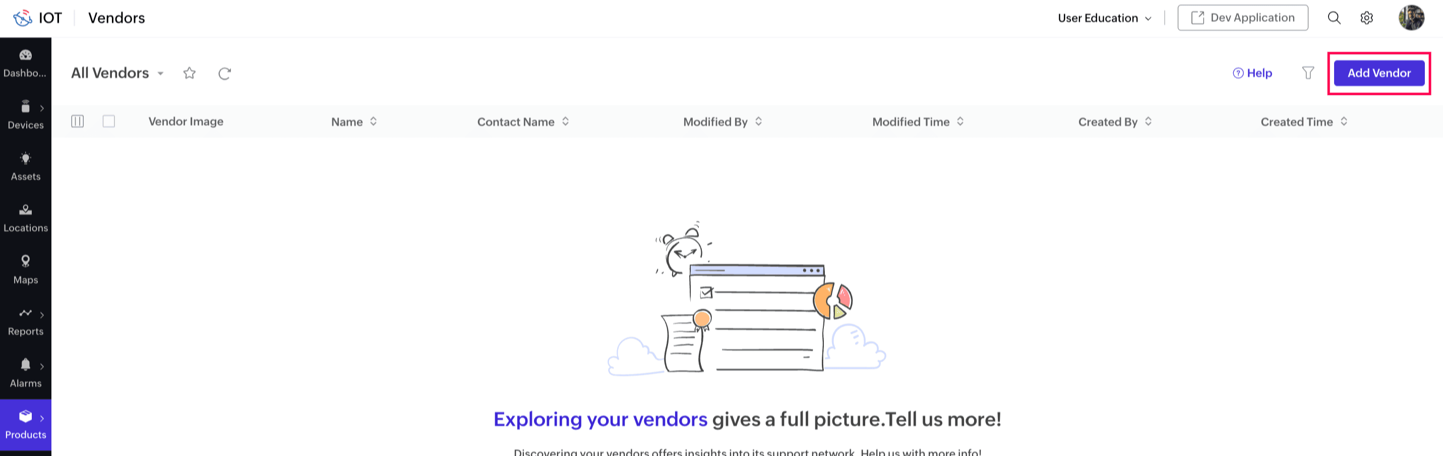 2. Select Products > Vendors in the left pane. For this illustration, Vendors is selected, but users can choose Manufacturers if required.