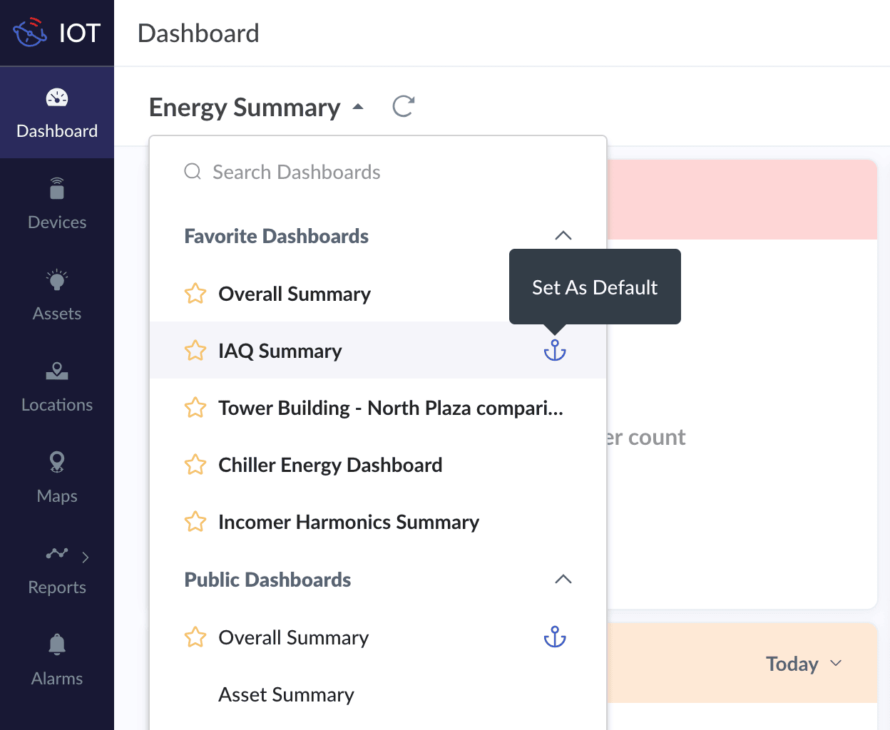 There are two main categories of dashboards that you can create in an IoT application: the General Dashboard and the Model Specific dashboard.