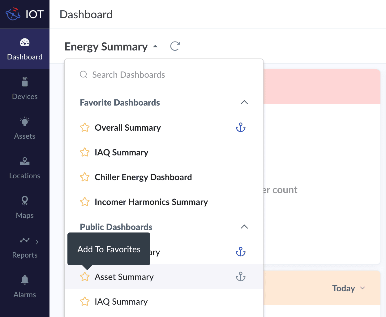 Frequently visited dashboards can be marked as favorites for easy access by clicking on the Add To Favorites icon in the dashboard's drop-down list.
