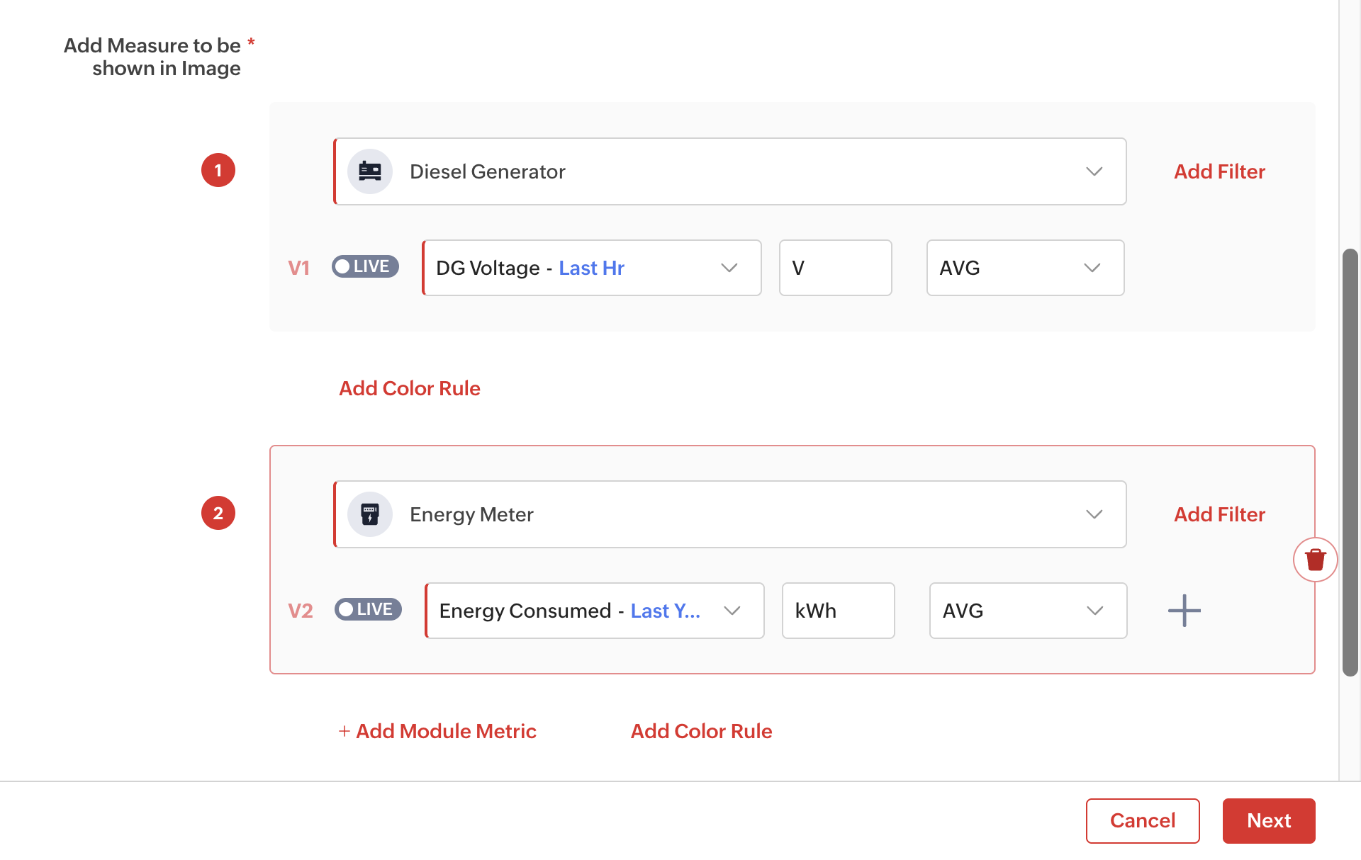 12. Click on the Add Color Rule text link to set color coding for the info cards based on the metric values. i.e., Each metric can be configured with a different set of colors.