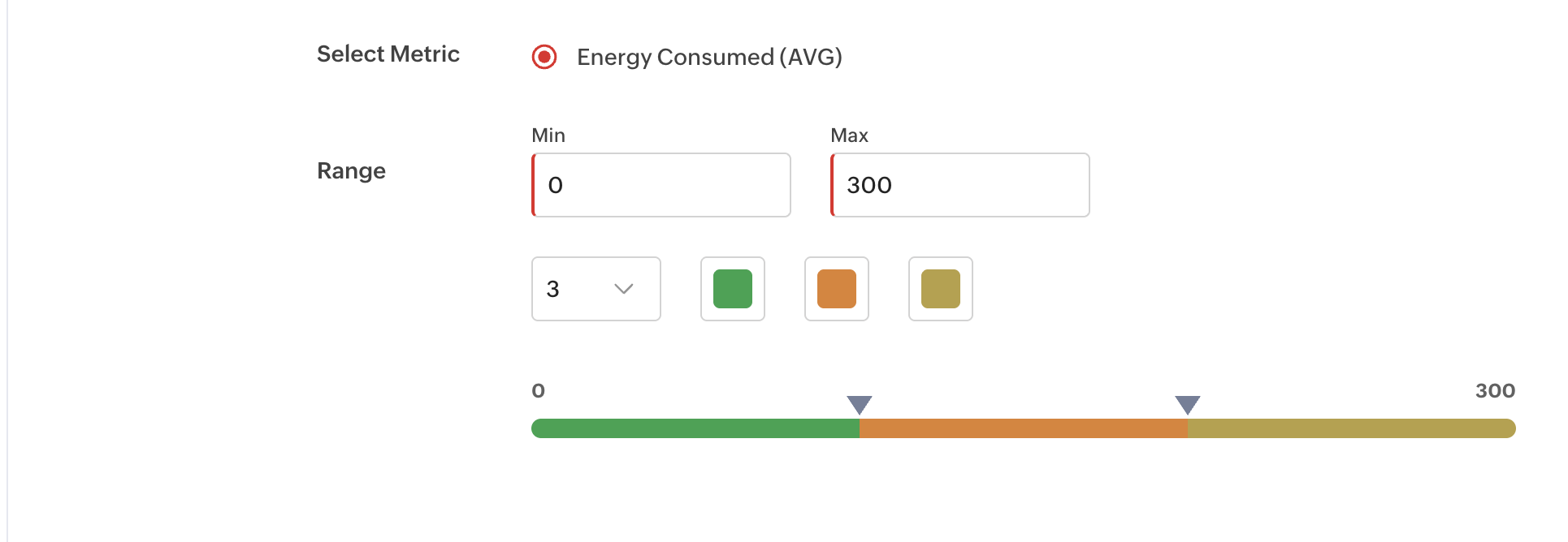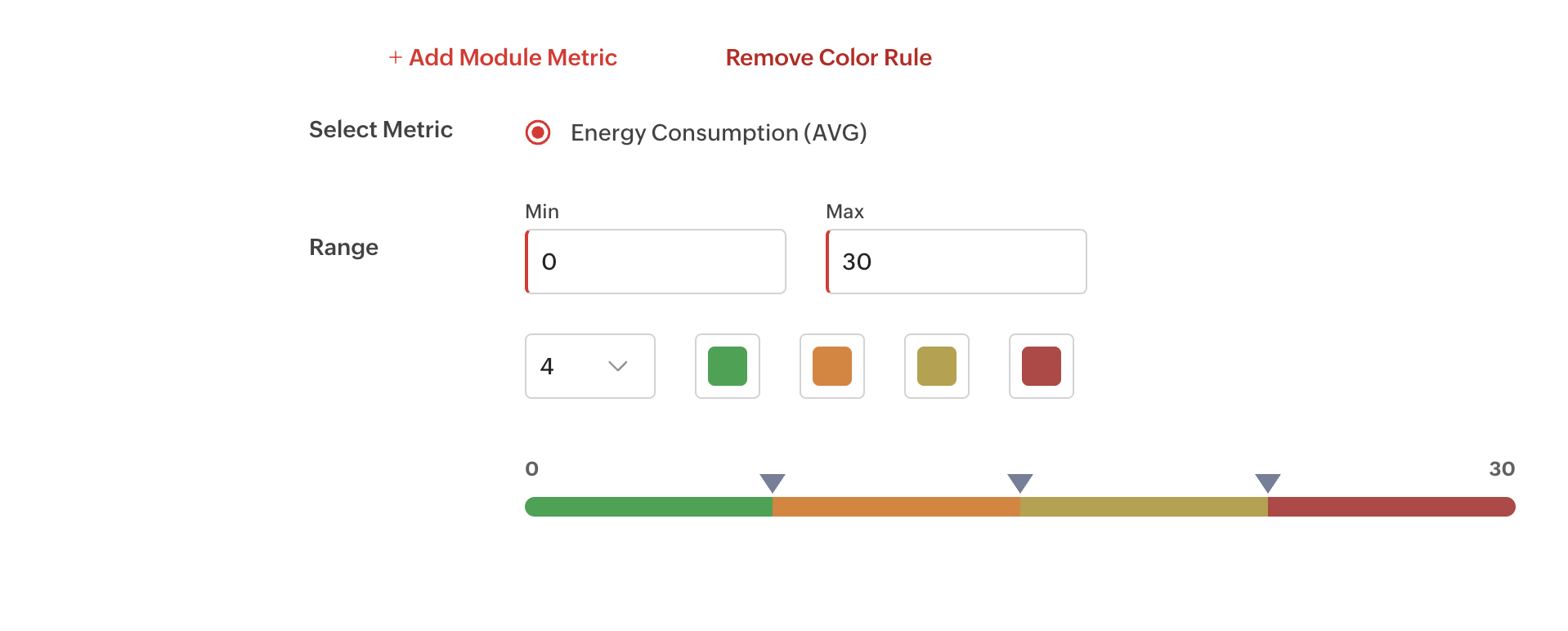 13. Provide the color range to configure the color settings for specific metric conditions.