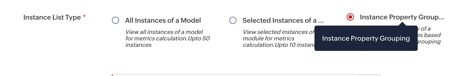 7. Select the option Instance Property Grouping from Instance List Type.