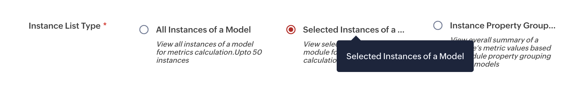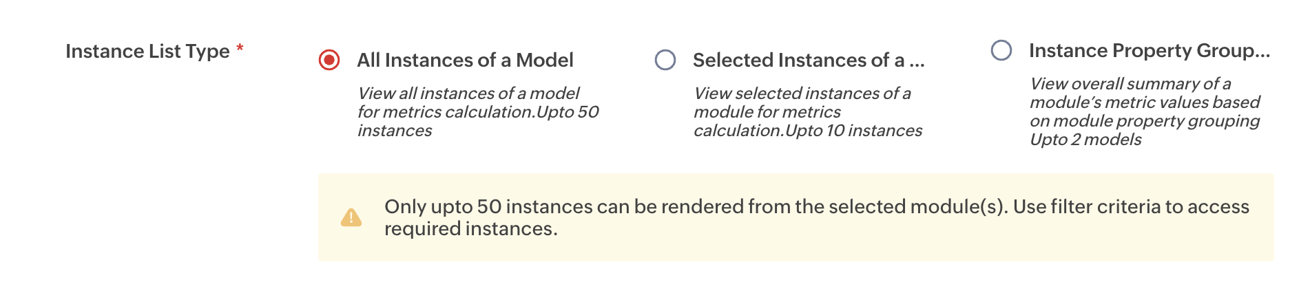Note: Multiple models and upto 10 specific instances of the models can be selected.
