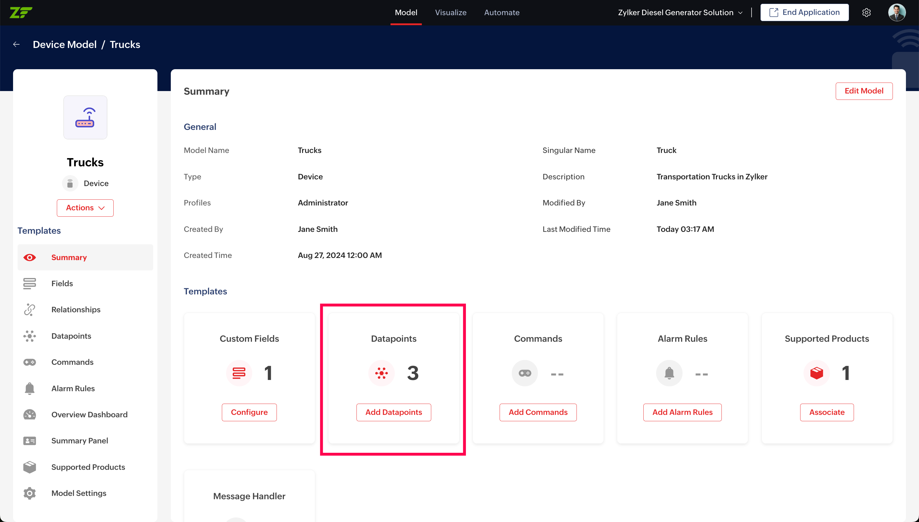 5. Click Add Custom Datapoint, and provide the datapoint details in the resultant screen.