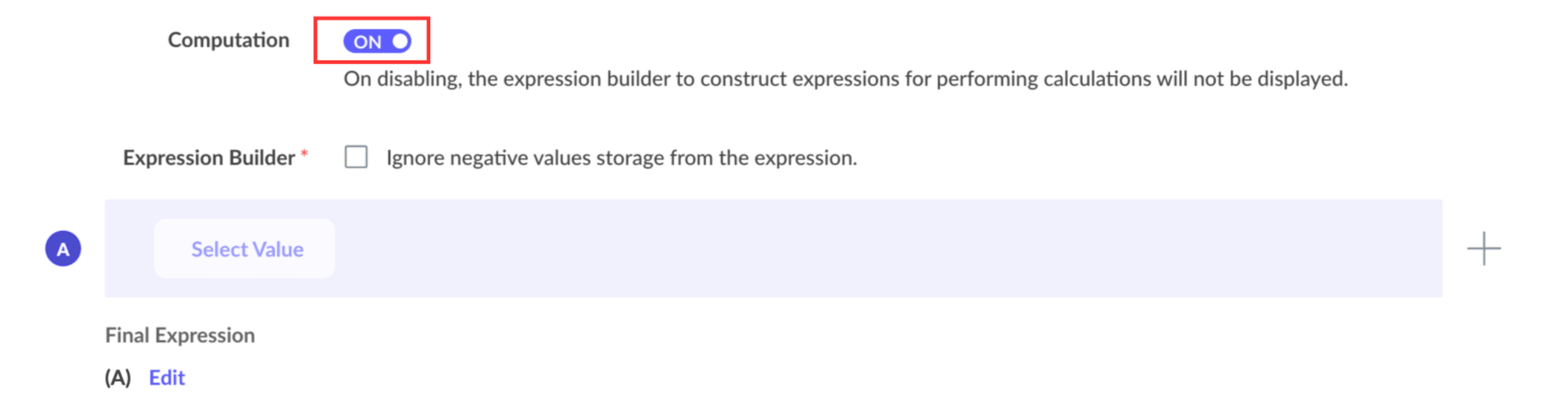 Note: Expression builder is available by default for Scheduled KPI datapoints. It will become available to Realtime Datapoints on enabling computation allowing for realtime expression computation.