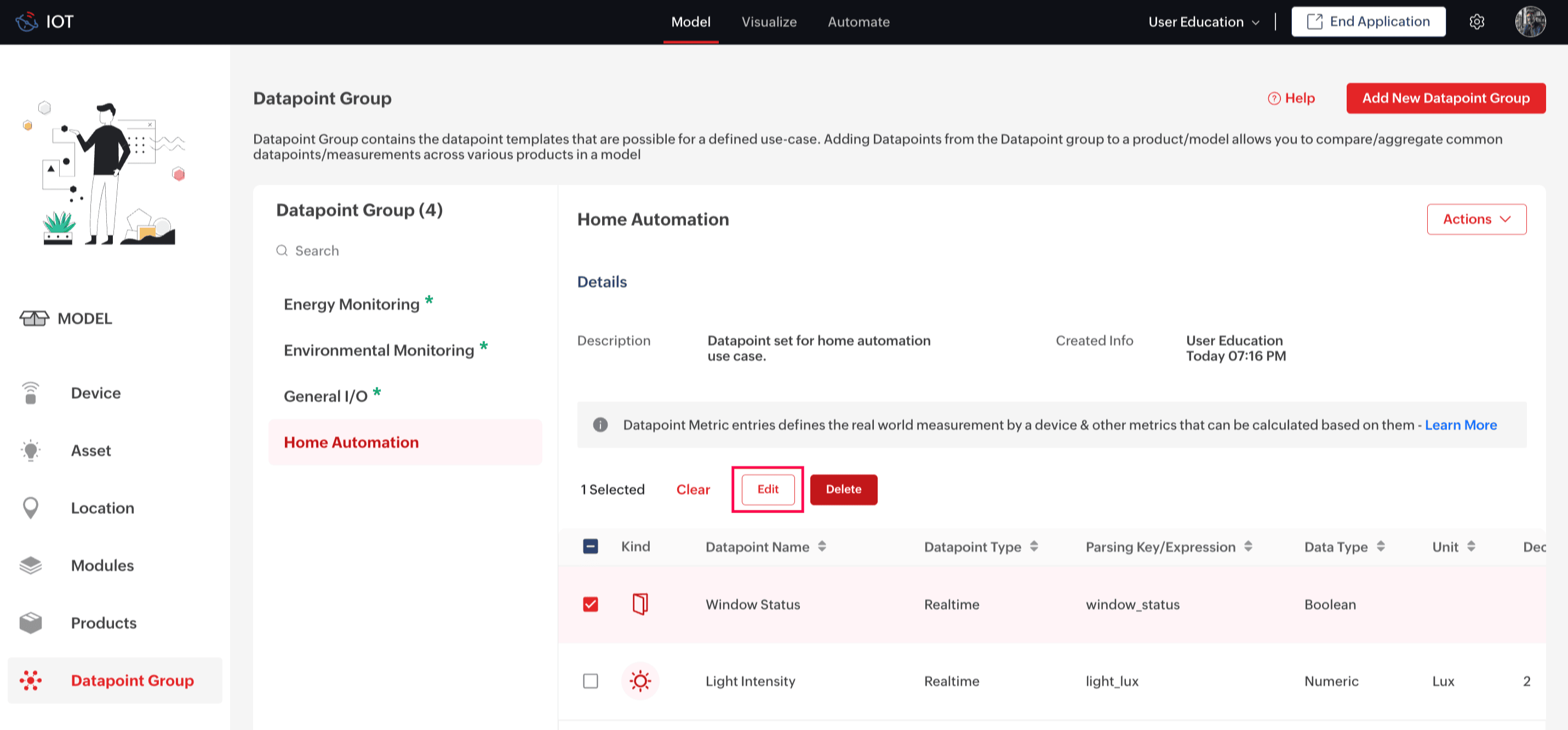 Once a datapoint group is added to the application users can edit the datapoint templates in the datapoint groups.