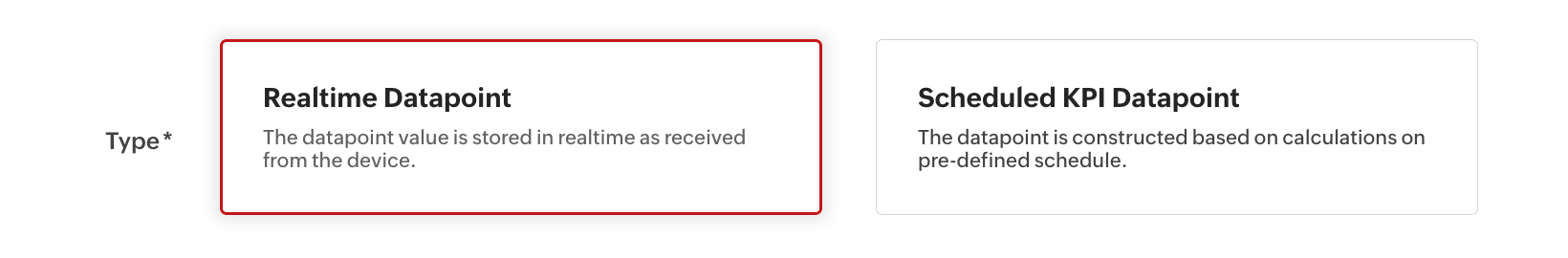 Data Type | Defines the type of data the datapoint stores. | Numeric indicates that the datapoint holds numerical values. |