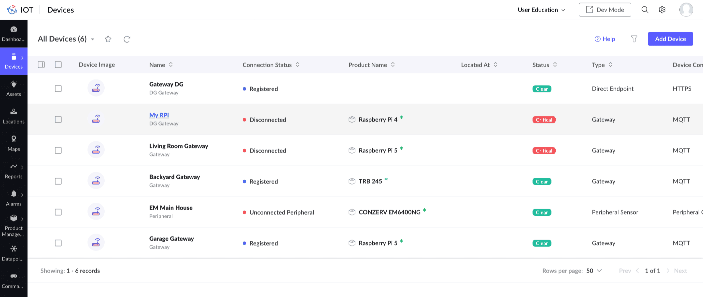 2. Select Devices > Devices in the left pane.You can select Assets to add a datapoint template to an asset or Location to add a datapoint template to a location.