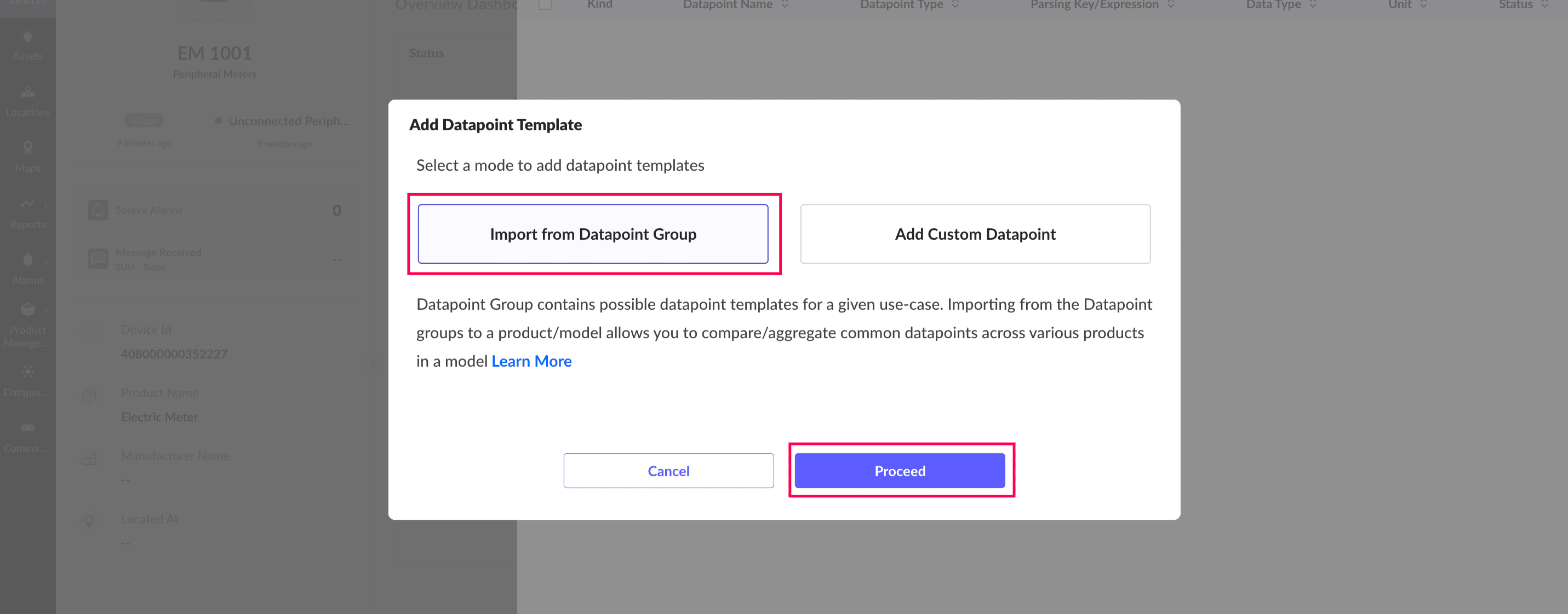 6. Select Import from Datapoint Group and click Proceed.