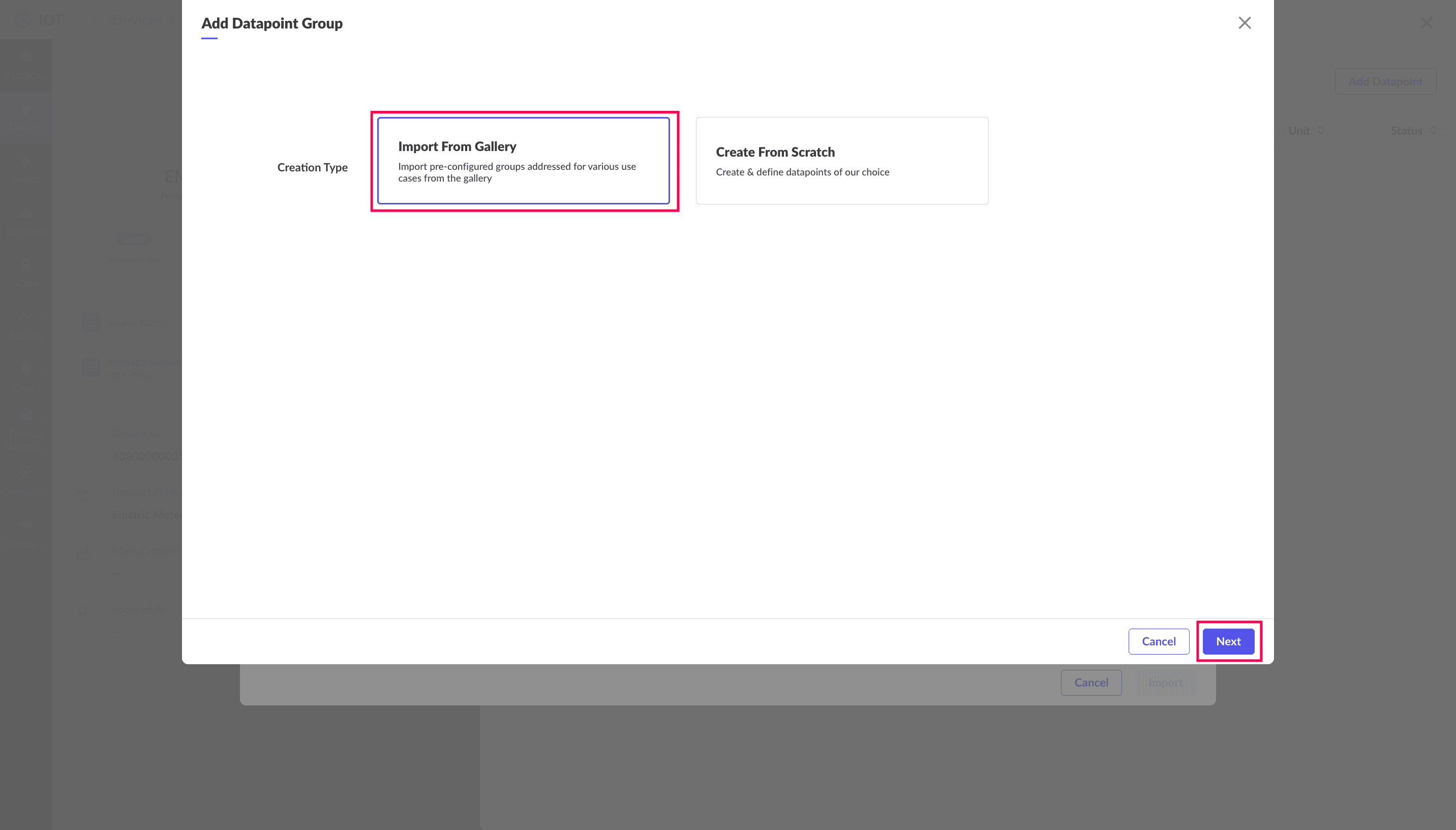 8. Choose Import From Gallery and click Next.