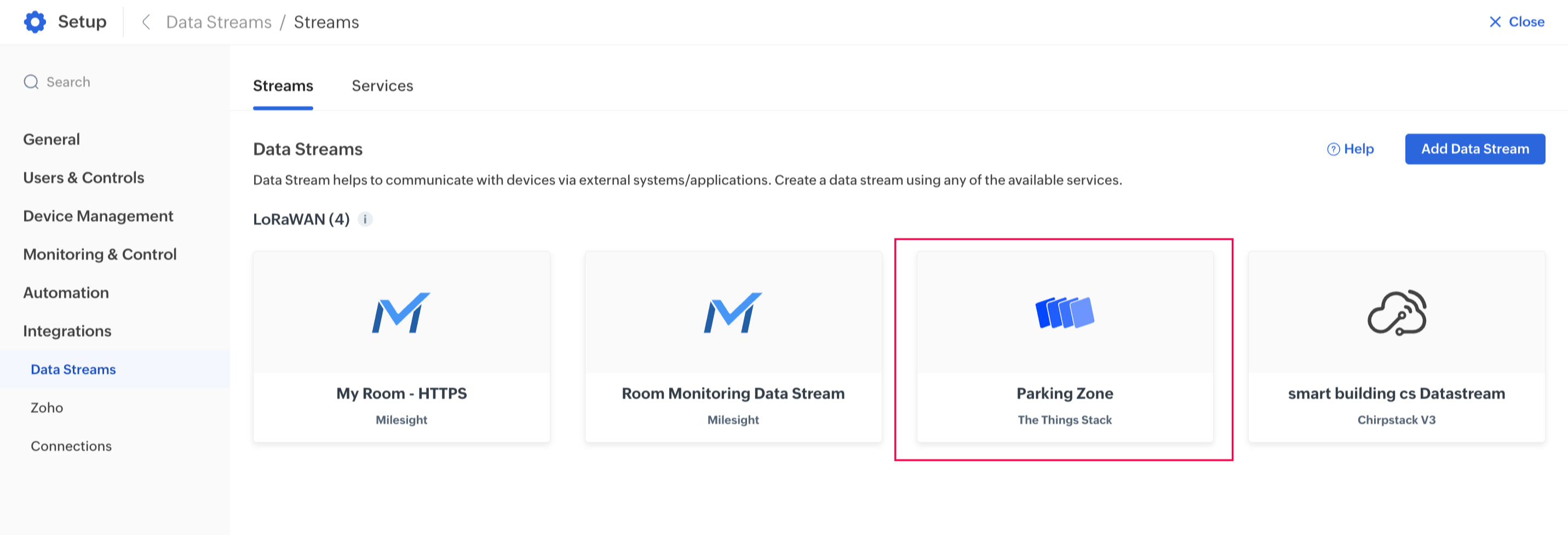 When a datastream is added in the Zoho IoT application, credentials will be generated that can be used to integrate and connect to the corresponding server or system. Datastreams are currently supported only for the LoRa network servers listed here. ...