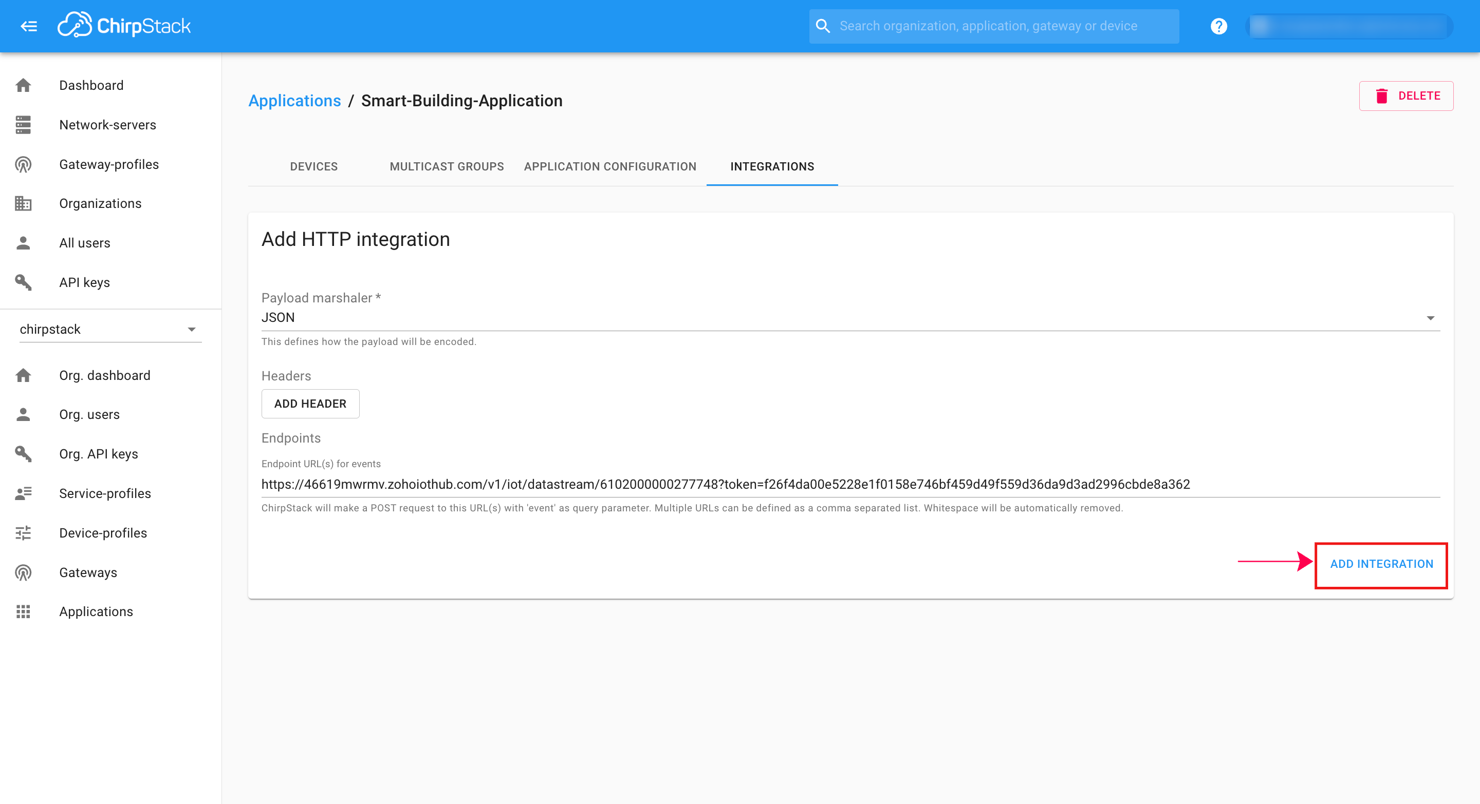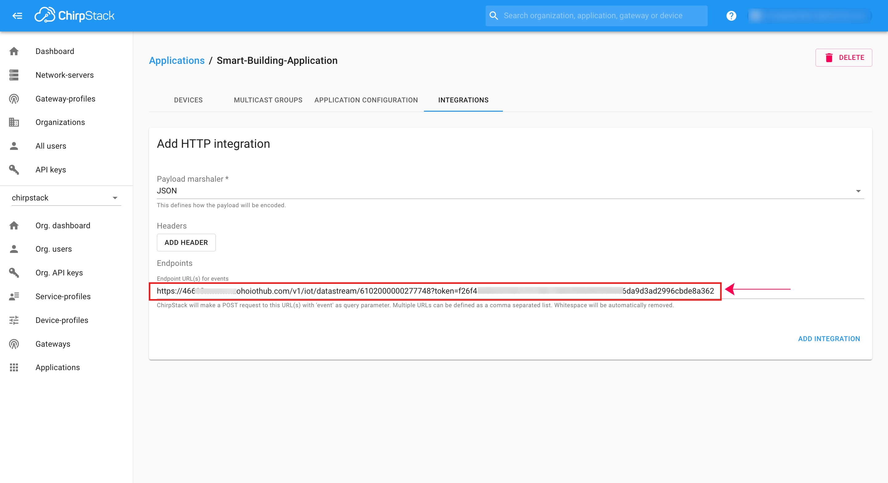 Configure the Integration in the The Things Stack console