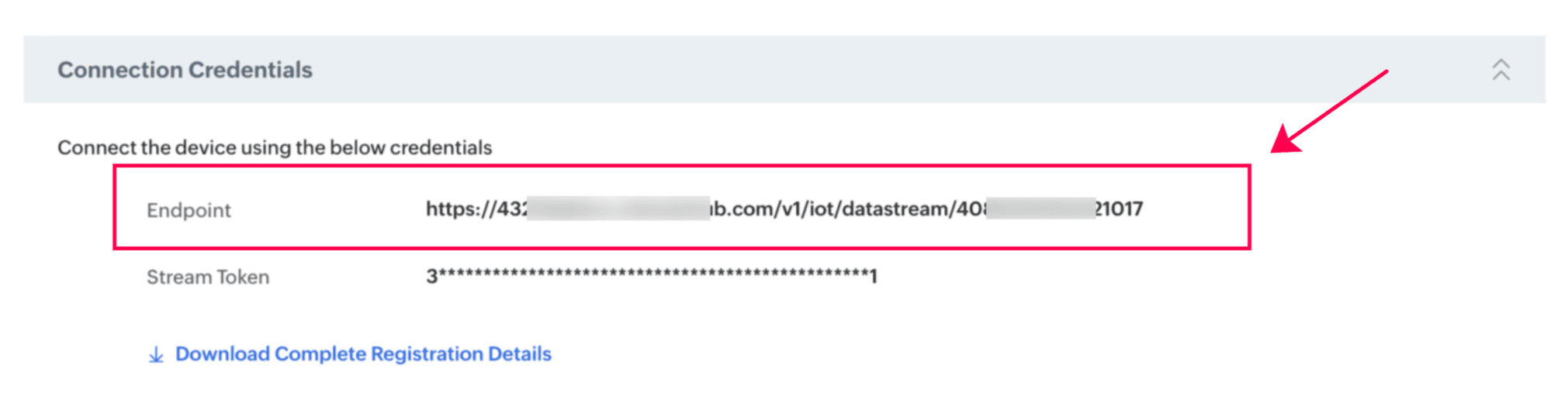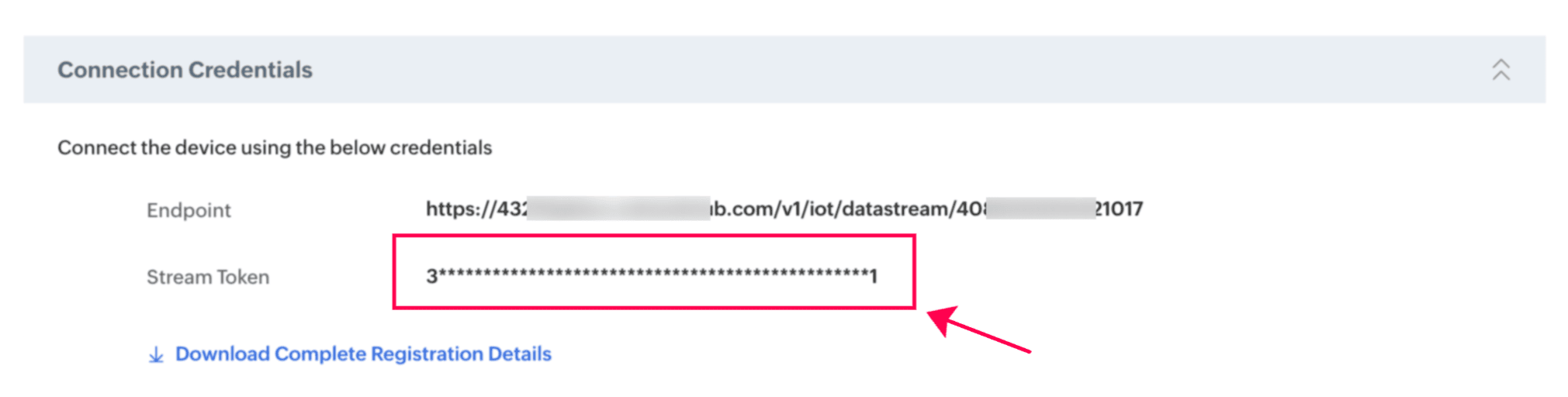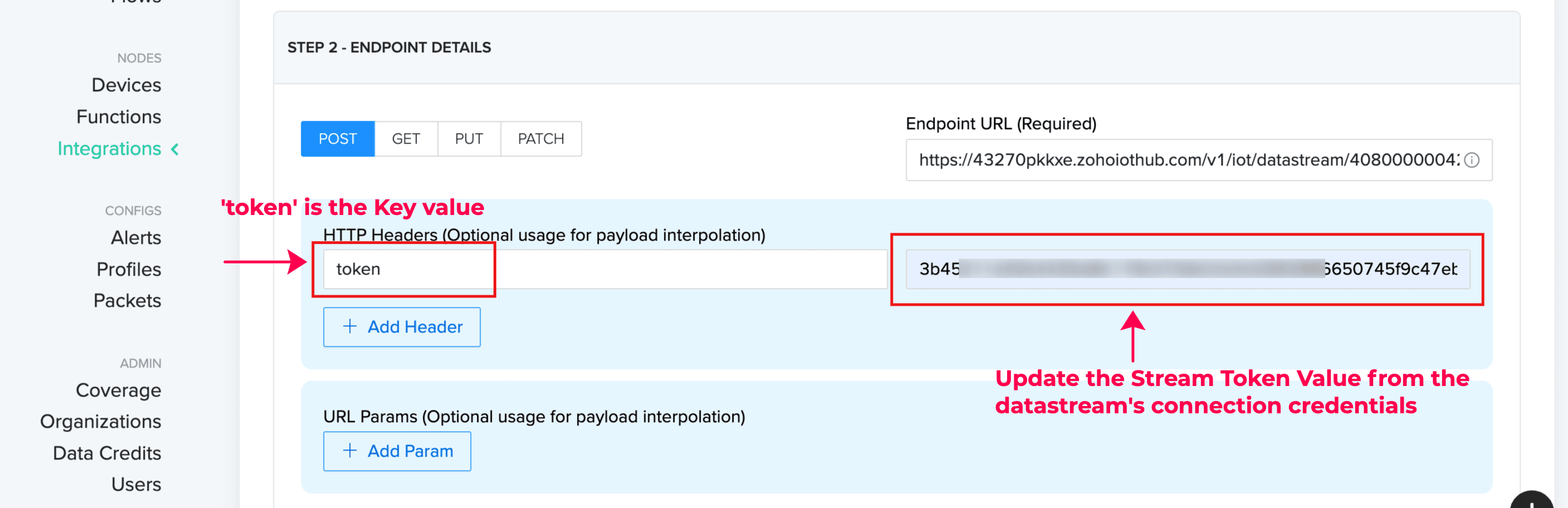 • Value: Retrieve the Stream Token value from the connection credentials of the datastream in Zoho IoT.