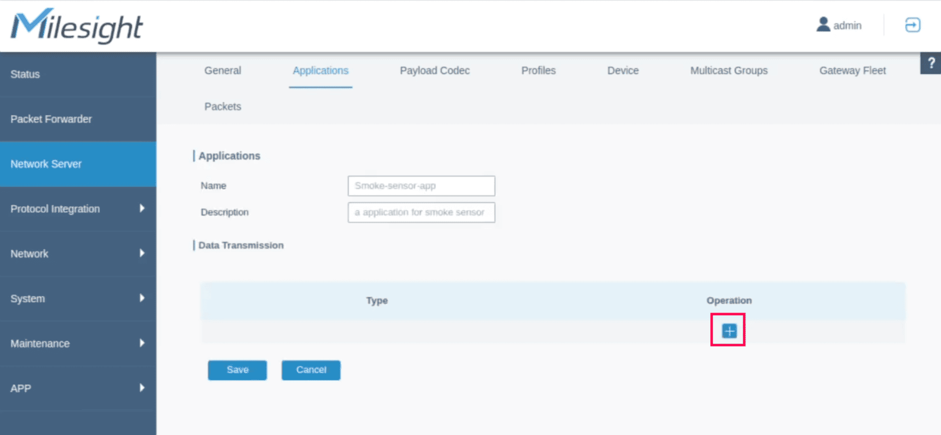 Select the Data Transmission Type based on the Communication Protocol chosen in the Zoho IoT Milesight Data Stream: